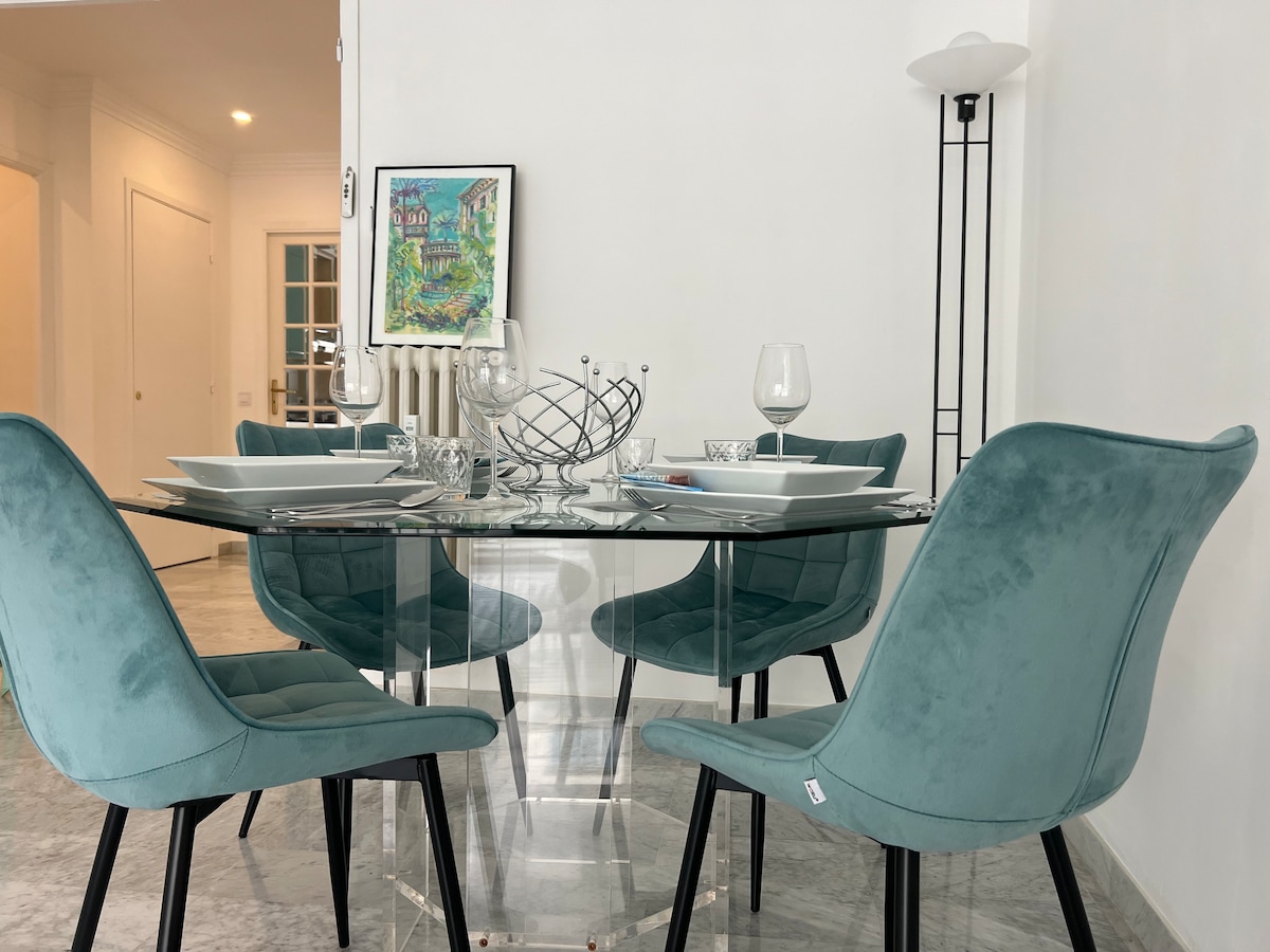 Die Wohnung mit 92 m² ist voll klimatisiert. Komplett renoviert, befindet es sich in der verkehrsfreien Zone der Altstadt von Nizza, nur 150 Meter vom Meer entfernt. Die Inneneinrichtung ist modern und geräumig und du wirst eine entspannte Atmosphäre erleben. Die Küche, die wie ein Restaurant in Paris gestaltet ist, und der große Esstisch laden zu köstlichen Mahlzeiten ein. Eine leise und moderne Klimaanlage hilft dir, deinen Aufenthalt an den heißen Tagen zu genießen!