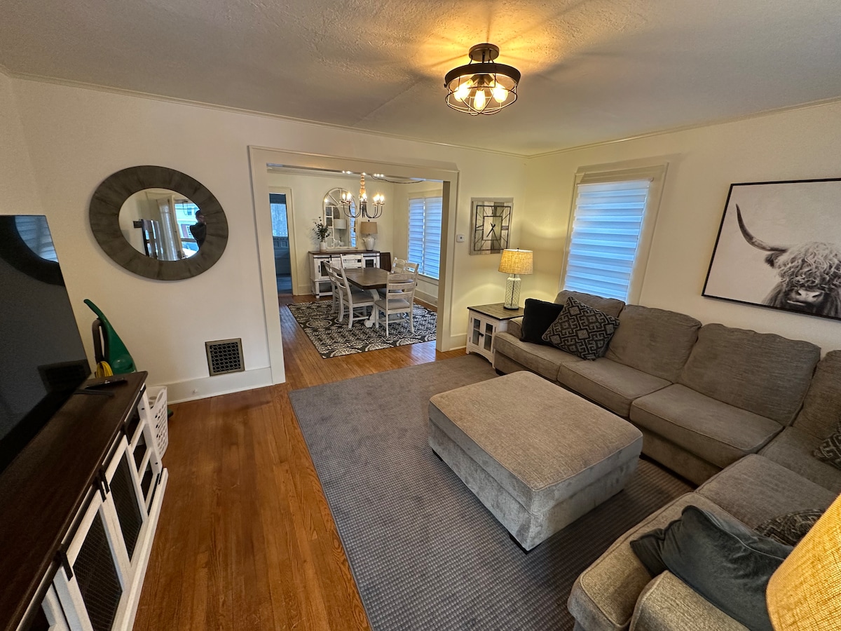 Die Kombination Main&Central Suite 1&2 ist die gesamte zweite Etage dieses schönen viktorianischen Hauses, 2 Blocks von den Geschäften und Veranstaltungen der Wellsville Main St entfernt. Du wirst saubere, warme, geräumige Zimmer mit bequemen Kingsize-Betten genießen. Jedes private Schlafzimmer verfügt über ein eigenes Wohnzimmer mit einem Tagesbett und einem Fernseher. Die voll ausgestattete Küche ist sehr zuvorkommend und das große Badezimmer verfügt über eine Waschmaschine und einen Trockner.