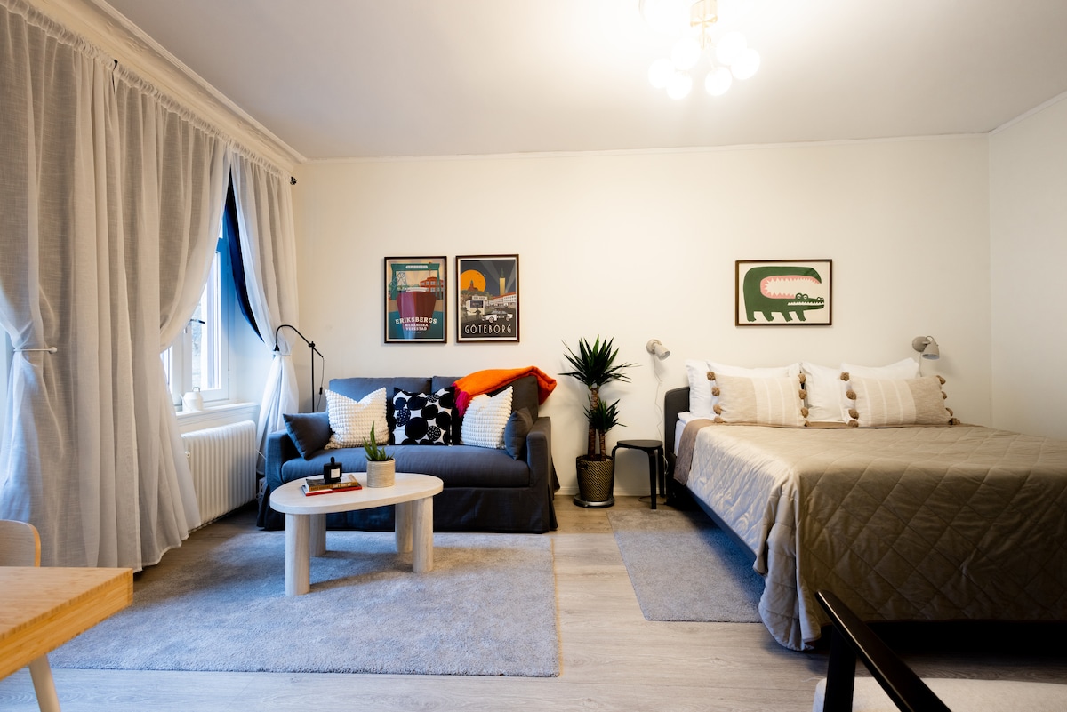 Haga – Göteborgs charmantestes Viertel 🏡✨ Schlendere durch Kopfsteinpflasterstraßen mit Boutiquen und dem Duft von frisch gebackenen Zimtschnecken. Dieses gemütliche Studio ist deine ruhige Ecke inmitten des Geschehens – ideal zum Erkunden, Entspannen oder einfach nur zum Eintauchen in die lokale Atmosphäre. Was in der Nähe ist: 🔹 2 Min. zu Cafés, Bäckereien und kleinen Kunsthandwerksläden 🔹 5 Min. bis Skansen Kronan – Panoramablick auf die Stadt von der Festung 🔹 10 Min. zum Universeum – Wissenschaft, Natur und praktischer Spaß