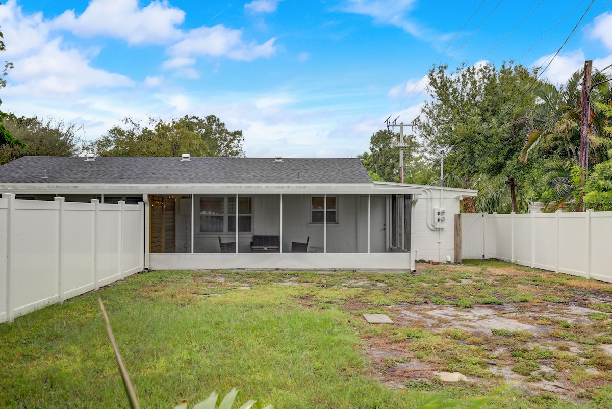 Dieses alte Haus in Florida wurde mit Granit-Arbeitsplatten in der Küche mit neueren Geräten, Keramikfliesen und Holzböden ausgestattet. Es gibt genügend Platz, um sich im Hauptwohnzimmer und im mit Holzwand und Decke ausgestatteten Aufenthaltsraum auszubreiten. Der Terrassenbereich im Hinterhof ist perfekt für Grillabende im Freien. Die üppige tropische Landschaftsgestaltung sorgt für das alte Florida-Heimgefühl. Die beste Annehmlichkeit ist eine halbprivate Außendusche mit üppiger Vegetation. Perfekt für Outdoor-Enthusiasten.