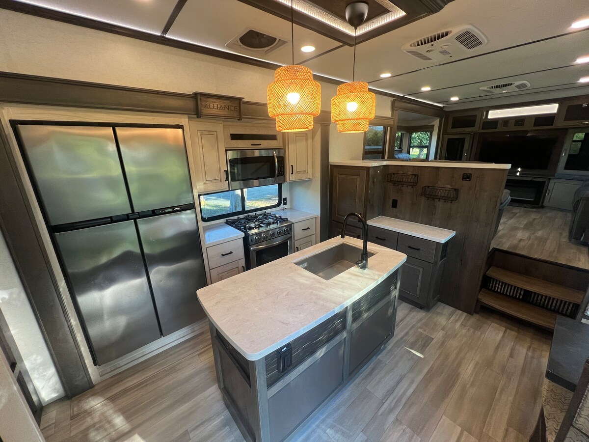 Fully furnished RV fifth wheel! Enjoy home away from home with our unit! We have everything you need to enjoy a few days outdoors with luxury! Locally located in Orange County, CA. Unit must be delivered and picked up by us. Come check it out! GUEST MUST BOOK OWN SITE AND HAVE PROOF OF RESERVATION 72 hours after booking - Additional delivery fee based on location. All sites booked must have FULL HOOKS UPS and 50 AMP Electric.