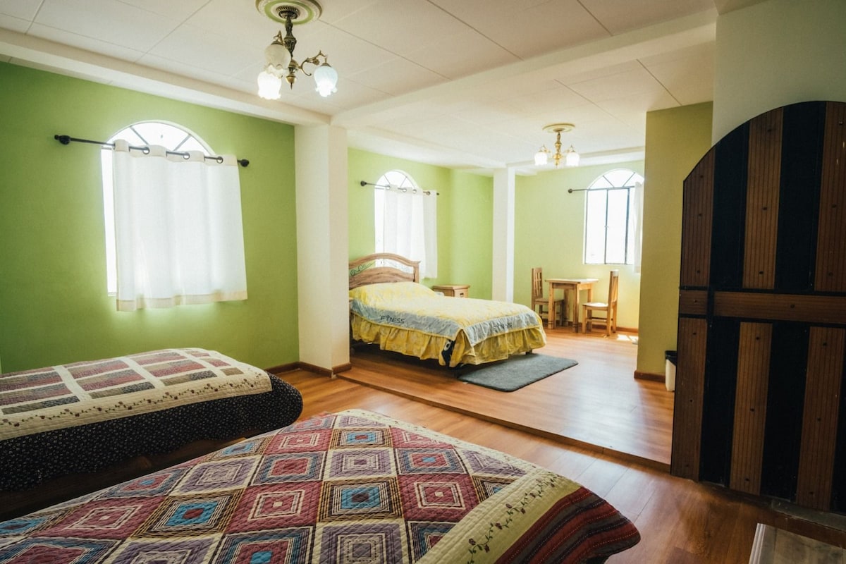 Komfortables, geräumiges Zimmer mit Zugang zu allem: Busbahnhof, zentraler Markt, öffentliche Verkehrsmittel. Zimmer für 2 oder 3 Personen mit zwei Betten und einem Schlafsofa und eigenem Bad. Gemeinschaftlich genutzte Bereiche: Wohnzimmer, Küche und Terrasse.