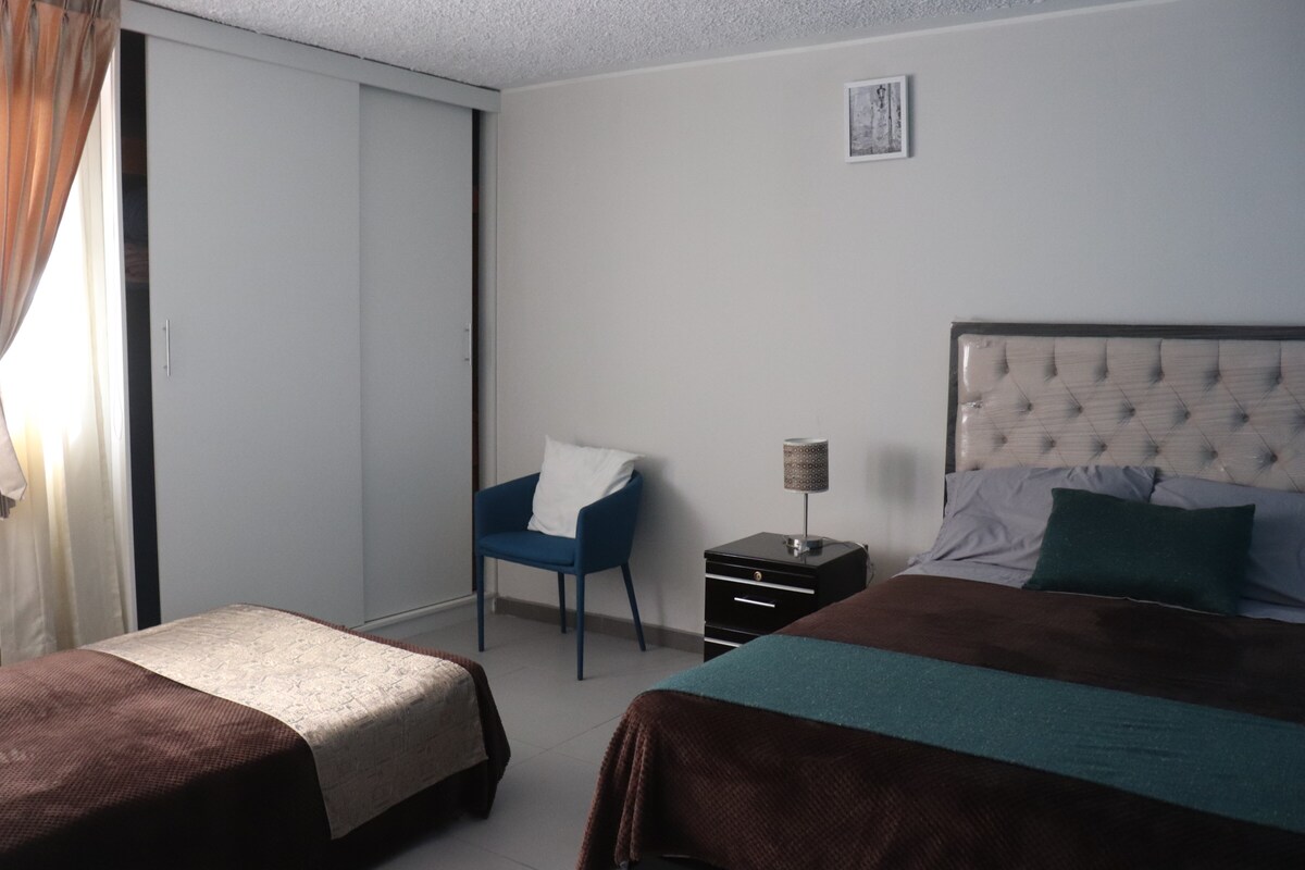 Moderno departamento en primer piso, con acceso fácil y un ambiente acogedor. Perfecto para quienes buscan comodidad, tranquilidad y una estadía relajante. Un espacio práctico y agradable que te hará sentir como en casa desde el primer momento. Servicios: 📶 Wifi 📺 3 televisores de 55” 🍳 Cocina totalmente equipada 🛏️ 3 dormitorios 💄 Tocador de maquillaje con espejo 🚪 Ubicado en primer piso (sin escaleras) 🚿 Agua caliente 🧼 Artículos básicos (jabón, papel higiénico, toallas) 🧺 Lavadora