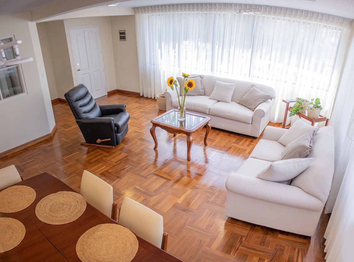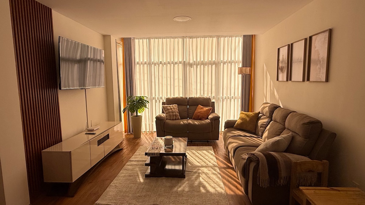 Ruhe, Sicherheit und Komfort in einem modernen und gemütlichen Apartment, ideal für Familien, Geschäftsleute oder Touristen, die Ruhe und Luxus in einer unschlagbaren Lage suchen. Der Raum vereint modernes Design, natürliches Licht und sorgfältig ausgewählte Details, damit du dich wie zu Hause fühlst. Sie verfügt über ein großes Wohnzimmer mit Smart-TV, Liegesofas und Fenstern, die den Raum mit Licht füllen; ein Esszimmer für vier Personen und eine voll ausgestattete Küche mit allem, was Sie brauchen.