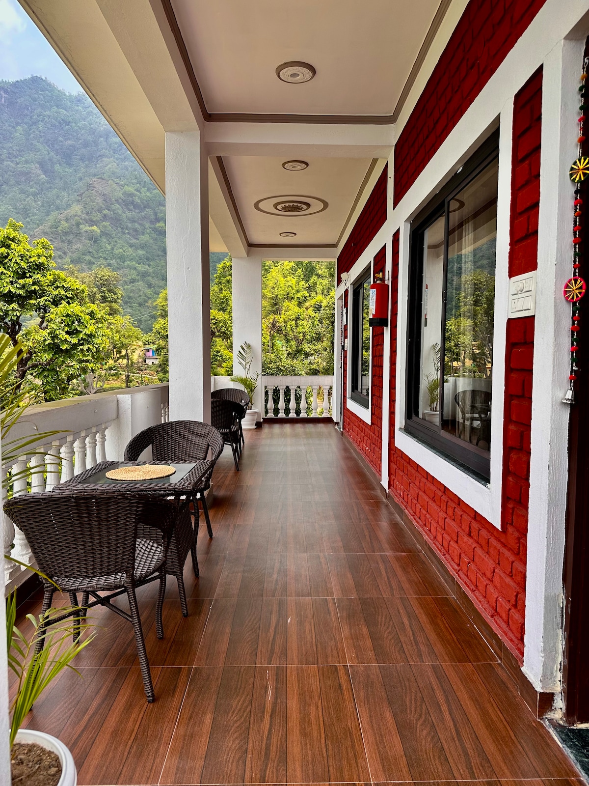 Herzlich Willkommen in deinem Rückzugsort in Rishikesh! Unser 3BHK bietet zwei eigene Badezimmer für alle, die eine VIP-Behandlung genießen — und ein drittes Badezimmer direkt vor dem Zimmer für alle, die ein kleines Abenteuer lieben. Bonus? Du wirst mit atemberaubendem Blick auf den Ganga River aufwachen, der deinen morgendlichen Tee noch spiritueller schmeckt. Der Komfort im Erdgeschoss bedeutet keine Marathons zum Treppensteigen — es sei denn, du fühlst dich extra Zen und möchtest um das Haus herumjoggen. Komm für die Aussicht, bleib für die Stimmung!