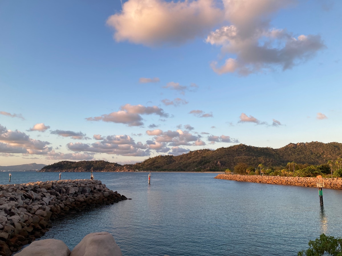 Atemberaubender, spektakulärer, Millionen-Dollar-Meerblick, in einer Strandwohnung mit Blick auf Magnetic Island, den Horizont und die ganze Strand-Esplanade. Beobachte und lausche dem Meer von deiner Wohnung aus und schlafe zum Rauschen der Wellen. Im Herzen der Cafés, Restaurants, Sightseeing und CBD. Der Flughafen und die Fähre von Magnetic Island sind weniger als 10 Minuten mit dem Taxi/dem Uber/Bus entfernt. Der Supermarkt ist weniger als 5 Gehminuten entfernt. Kostenloser, sicherer Parkplatz vor Ort. Kostenloses WLAN.