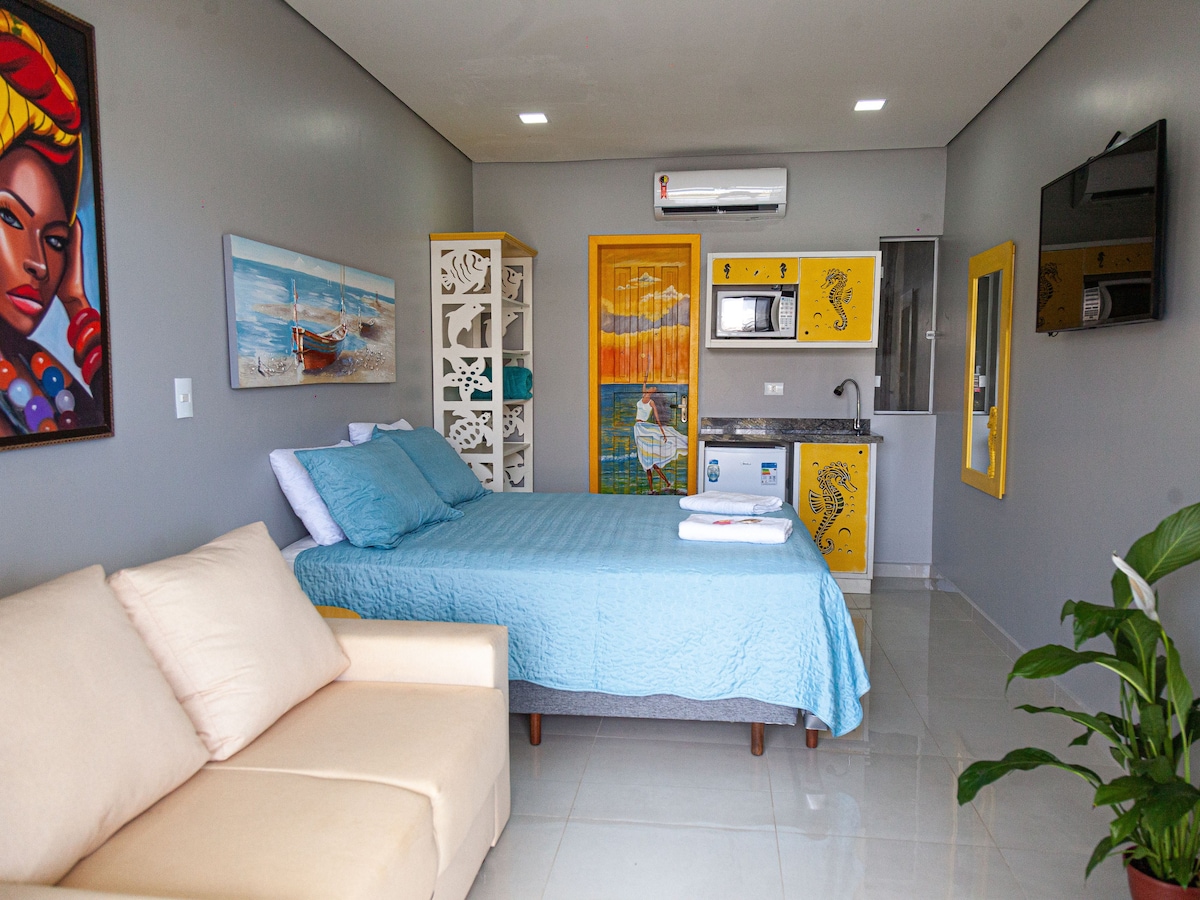 Entspannen Sie sich mit der ganzen Familie in dieser ruhigen Unterkunft. Studio für bis zu 4 Personen direkt am Strand mit spektakulärer Aussicht. Beheizter Pool auf dem Dach! Das Studio ist klimatisiert, hat geplante Möbel, einen frostfreien Kühlschrank, einen 4-Flammen-Herd mit Backofen und Superflamme, Waschmaschine und Trockner, Mikrowelle, Airfryer, Töpfe und Utensilien sowie Smart-TV, WLAN, Bettwäsche und Handtücher von Buddemeyer, heiße Dusche. Balkon mit ausgestattetem Grill. Liegestühle, Sonnenschirm, Frescobol🎵 Fuß im Sand 🎵🎵🎵🎵am Meer!🎵🎵