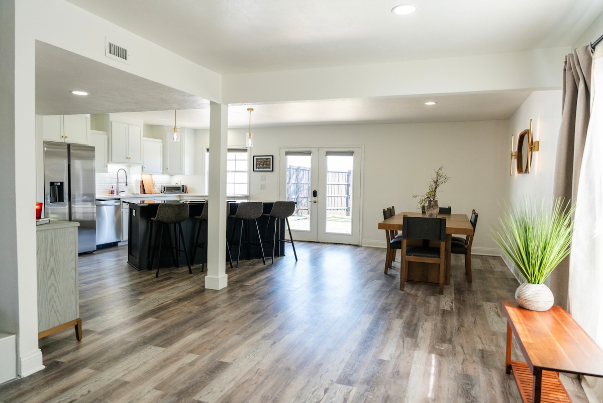 Welcome to your favorite hideaway. Walk in & the vibe is immediate—natural light, cozy corners, & an open space that makes it easy to settle into vacation mode. The living room invites long conversations, movie nights, & the occasional afternoon nap you didn’t plan but absolutely deserve. The kitchen island tends to become the unofficial hangout spot. Someone’s pouring drinks, someone’s chopping, someone’s telling a story. Then there’s the backyard—light the fire pit, lay in the hammock & unwind