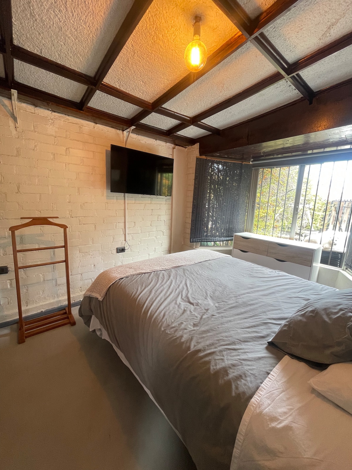 Willkommen@ in deiner Zuflucht in Vitacura Wir laden dich ein, diese komfortable und helle Wohnung in einer der schönsten und sichersten Gegenden von Santiago zu genießen. Hier bist du nur wenige Gehminuten vom Parque Arauco, Open Kennedy, Parque Araucano und der Deutschen Klinik entfernt. Die Wohnung ist so gestaltet, dass du dich wie zu Hause fühlst: Sie verfügt über eine integrierte Küche aus Holz, die komplett ausgestattet ist, sodass du alles kochen kannst, was du möchtest; ein sehr komfortables Kingsize-Bett und ein Schlafsofa mit Topper.