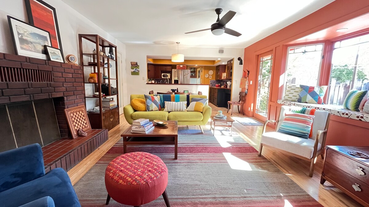 Entspannen Sie sich auf der abgelegenen Terrasse oder genießen Sie die Feuerstelle in unserer ruhigen Nachbarschaft. Nur einen kurzen Spaziergang von der Innenstadt von Pasó entfernt. Die komplett renovierte Küche, Waschküche und Badezimmer machen dieses 1950 Mid-Century-Haus groß. Und wenn es Zeit ist, es eine Nacht zu nennen, wird niemand um das große Bett kämpfen. In jedem Schlafzimmer gibt es eine Kingsize-Matratze. EV-Ladung gegen eine geringe Gebühr pro Nacht verfügbar. Komm und sieh, warum Paso Robles das Epizentrum des Weinanbaugebiets an der Central Coast ist.