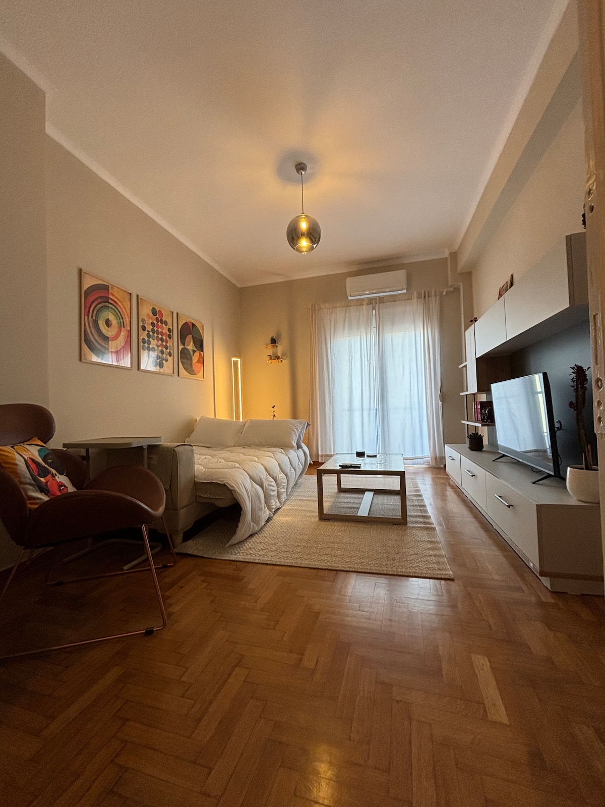 Luxuriös eingerichtetes Studio-Einzimmerwohnung im zentralsten Punkt von Patras (Georgiou-Platz), renoviert im Januar 2020. Die Wohnung befindet sich im Zwischengeschoss eines Wohnhauses, verfügt über einen Balkon und wird nicht von einem Aufzug bedient (17 Stufen). 40-Zoll-Smart-TV mit Netflix und Klimaanlage 12.000 btu. Reg.-Nr. 00000884371 Luxuriöses Studio-Apartment mitten im Zentrum von Patras (St. George Square), im Januar 2020 komplett renoviert. 40-Zoll-TV und Klimaanlage 12.000 btu.