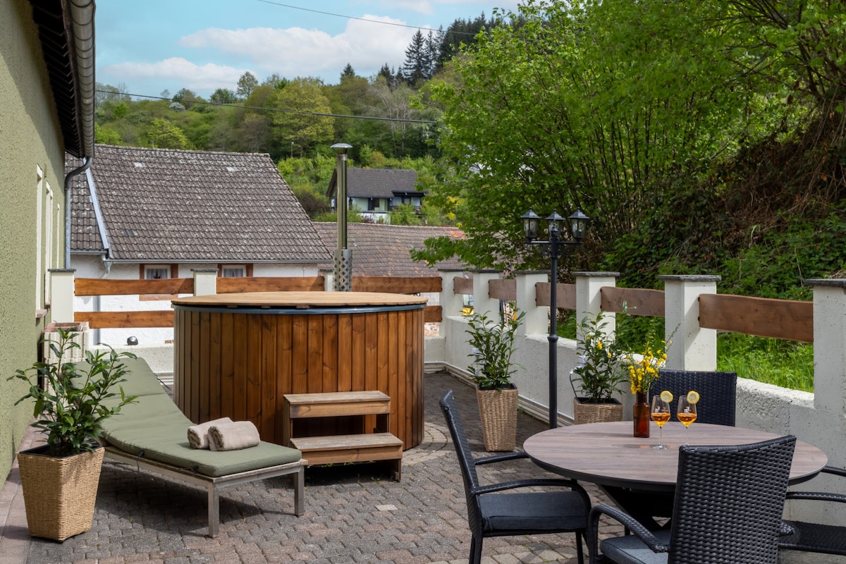 Highlights: → Zen-inspirierte Einrichtung → Panoramablick über Gerolstein → Privater Whirlpool mit Sichtschutz → Moderne Sauna → LED-Kamin im Wohnzimmer → Großer Wohn- & Essbereich → Voll ausgestattete Küche → Terrasse mit Gartenmöbeln → Direkter Zugang zum Eifelsteig → Check-in via Smart-Lock → Digitaler Reiseführer mit Tipps → Smart-TV & Streaming → Kostenloses WLAN → Familienfreundlich → Kinderbett & Hochstuhl