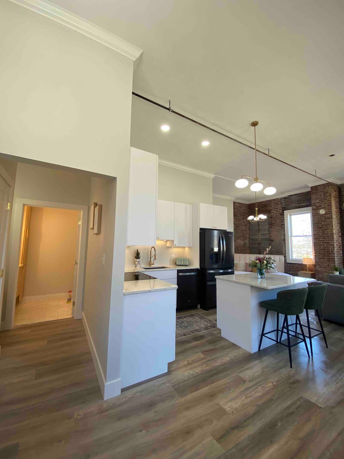 Erlebe die Schönheit der Innenstadt von Du Quoin in unserer atemberaubenden historischen Loft-Wohnung. Diese Unterkunft wurde mit brandneuen Bauelementen ausgestattet und verfügt über stilvolle Designelemente in Kombination mit modernen Annehmlichkeiten, um einen wirklich einzigartigen Aufenthalt zu schaffen. Du wirst die großen Fenster, hohen Decken und den zusätzlichen Platz lieben. Dieses Loft verfügt über eine erstklassige Lage mit Blick auf die Main Street. Zu Fuß erreichbar: St. Nicholas Hotel Brewery, Biancos Eisdiele, Alongis italienisches Restaurant, Marks Bakery und viele kleine Stadtgeschäfte.