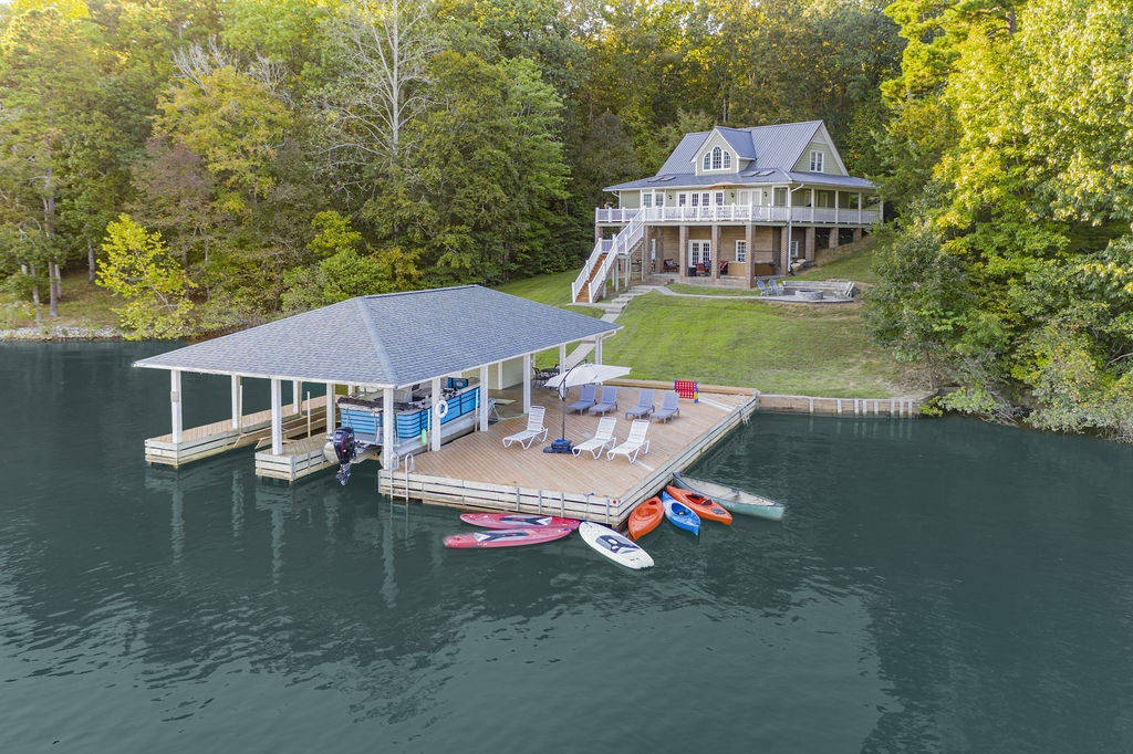 Get away from the stresses of life with this 3-Bedroom lakehouse with large boathouse. Sleeps 10 people in bedrooms and additional spaces on living room on couches. Breathtaking view of the lake and surrounding. Enjoy the water with included floating water mat or explore the area with our 2 kayaks and 2 paddle boards. Home features 3 bedrooms, 2 full baths, spacious full kitchen, washer/dryer, fire pit, 1,000MBs WIFI, YouTube LiveTV, gas grill , whole house standby generator and other amenities.