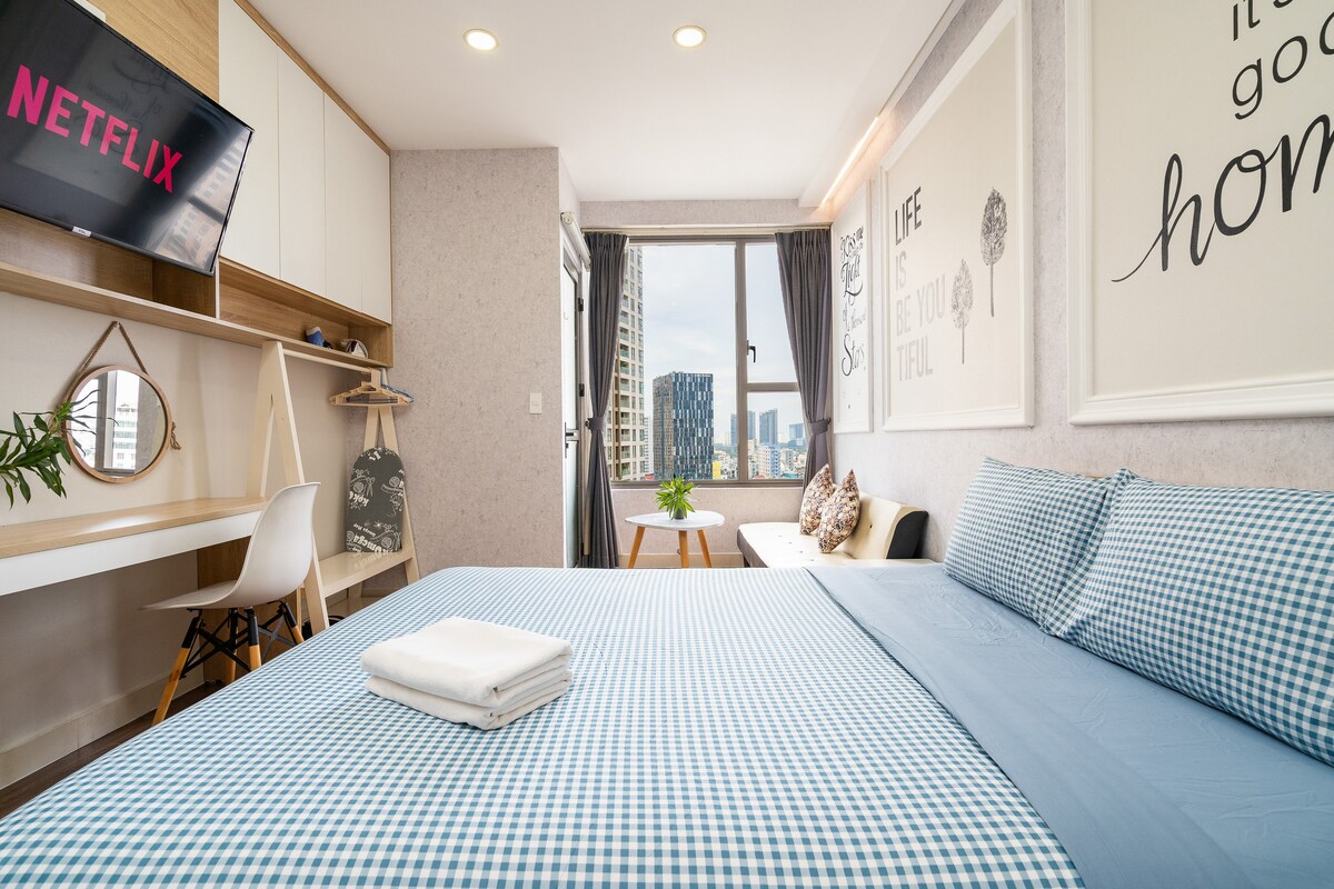 【Urban Oasis】 Luxury Studio in Ho Chi Minh CBD | 45 m² Panoramablick | 5 Min. Lifestyle-Hub 🏙️ Die Highlights: • Top-Lage: 2 Gehminuten zu Cafés/Restaurants/Lebensmittelgeschäften, 5 Minuten zum Supermarkt, 600 m zur Pink Church • Premium-Wohnen: raumhohe Fenster, Samsung Frame TV, Emma-Matratze, Smart Lock + 24/7 Sicherheit • Arbeitsbereit: 200 Mbit/s Glasfaser, 1,5 m Arbeitsbereich • Vergünstigungen: Kostenloses Parken für Motorräder + Reinigung alle zwei Wochen (nur bei Langzeitaufenthalten) 🔑 Smart-Check-in: APP-Fernzugriff + Schlüsselbox