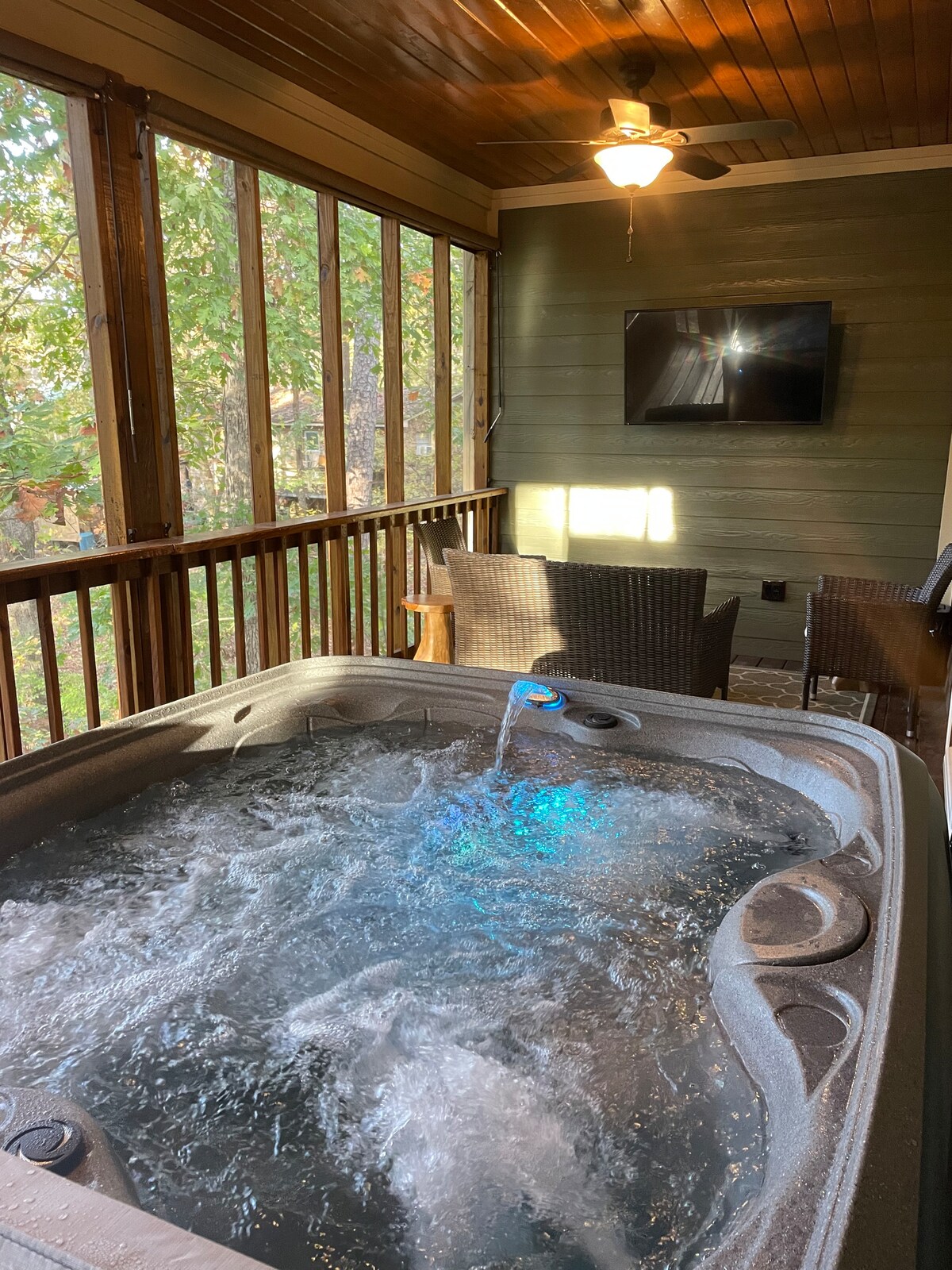 Coral Ridge ist der perfekte Ort für zwei. Entfliehe dem Alltag und genieße die Natur und Entspannung vom Feinsten. Genieße die atemberaubende Aussicht, während du gleichzeitig in einem Whirlpool entspannst und den Geräuschen des Wasserfalls lauschst. Brauchst du ein wenig Abenteuer? Wandere auf unserem malerischen Weg hinunter zum schönen, klaren Wasser des Indian Creek. Wate in den Stromschnellen, wirf nach einem kleinen Fischmund oder lehn dich einfach zurück und meditiere in dieser wunderschönen Umgebung.