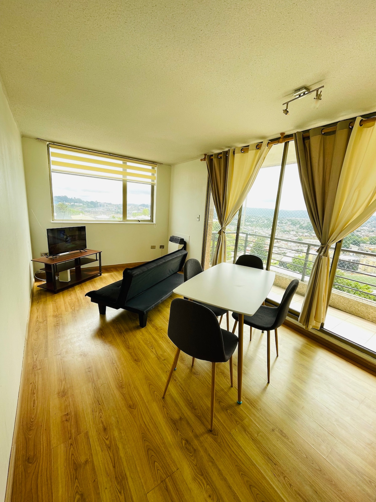 Wohnung im 16. Stock, gemütlich, komfortabel und voll ausgestattet, Wohnung mit 2 Schlafzimmern/2 Bädern in der Gemeinde Concepción. Ausgezeichnete Lage, mit beschleunigtem Zugang zu Supermärkten, Kliniken und Einkaufszentren mit Blick auf die Laguna Tres Pascualas. Ideal für Familien oder kleine Gruppen, die Komfort und Konnektivität suchen. Ausgestattet mit WLAN, 55-Zoll 4K-Smart-TV, Netflix-Zugang und Directv Go (persönliches Konto). Private Parkplätze in der U-Bahn.