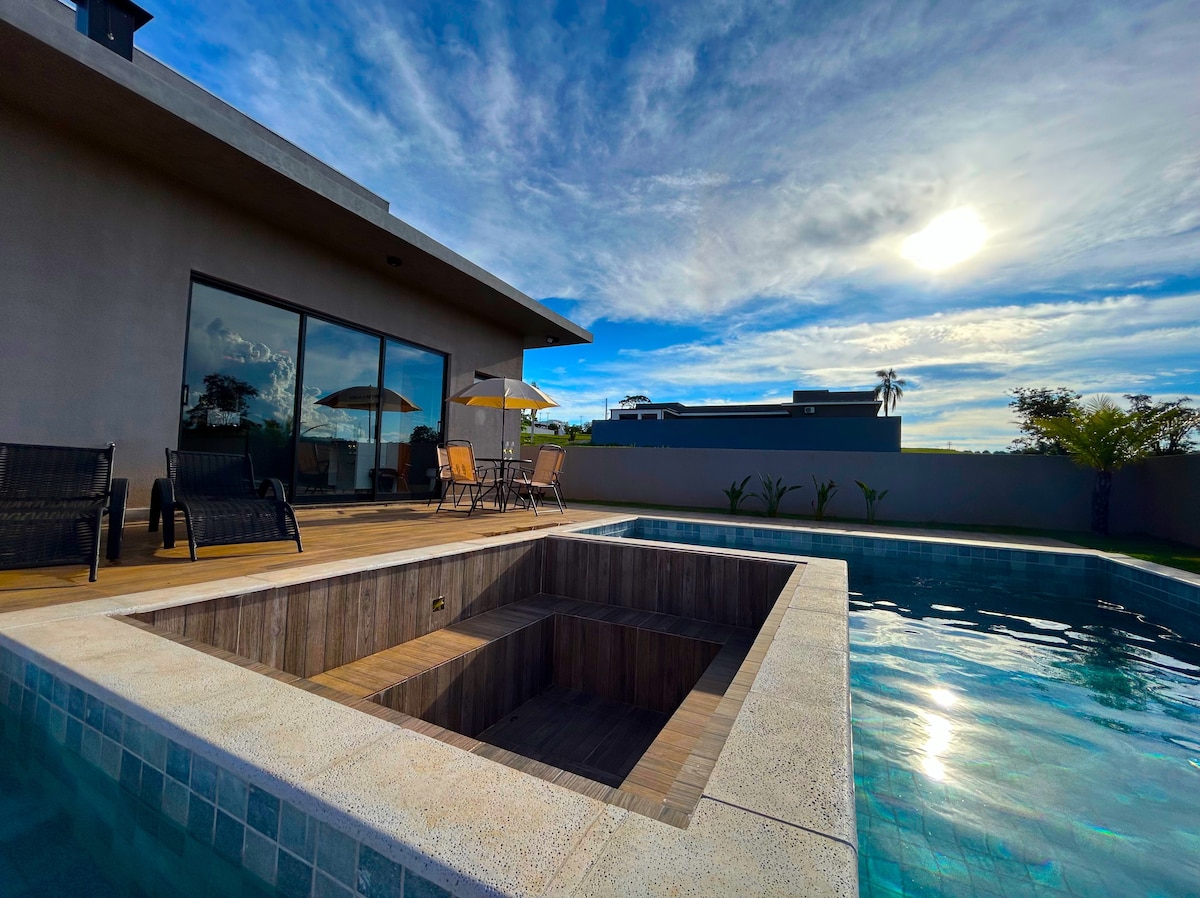 Casa com vista incrível para a Represa Ar-condicionado em todos os cômodos, incluindo sala 5 dormitórios, sendo 4 suítes, e comporta até 18 pessoas Banheiros com cromoterapia 2 escritórios (1 com ar); wi-fi excelente Quadra de Beach e Parquinho Infantil Privativo. Piscina: raia de 20m Jacuzzi: sob consulta Filtro de água e Nespresso Secador, roupa de cama, adega e cervejeira Iutúbi: "SC XIII – Casa 5 quartos, 4 suítes, 17 pessoas, Jacuzzi, Quadra de Beach, Churrasqueira, Piscina"