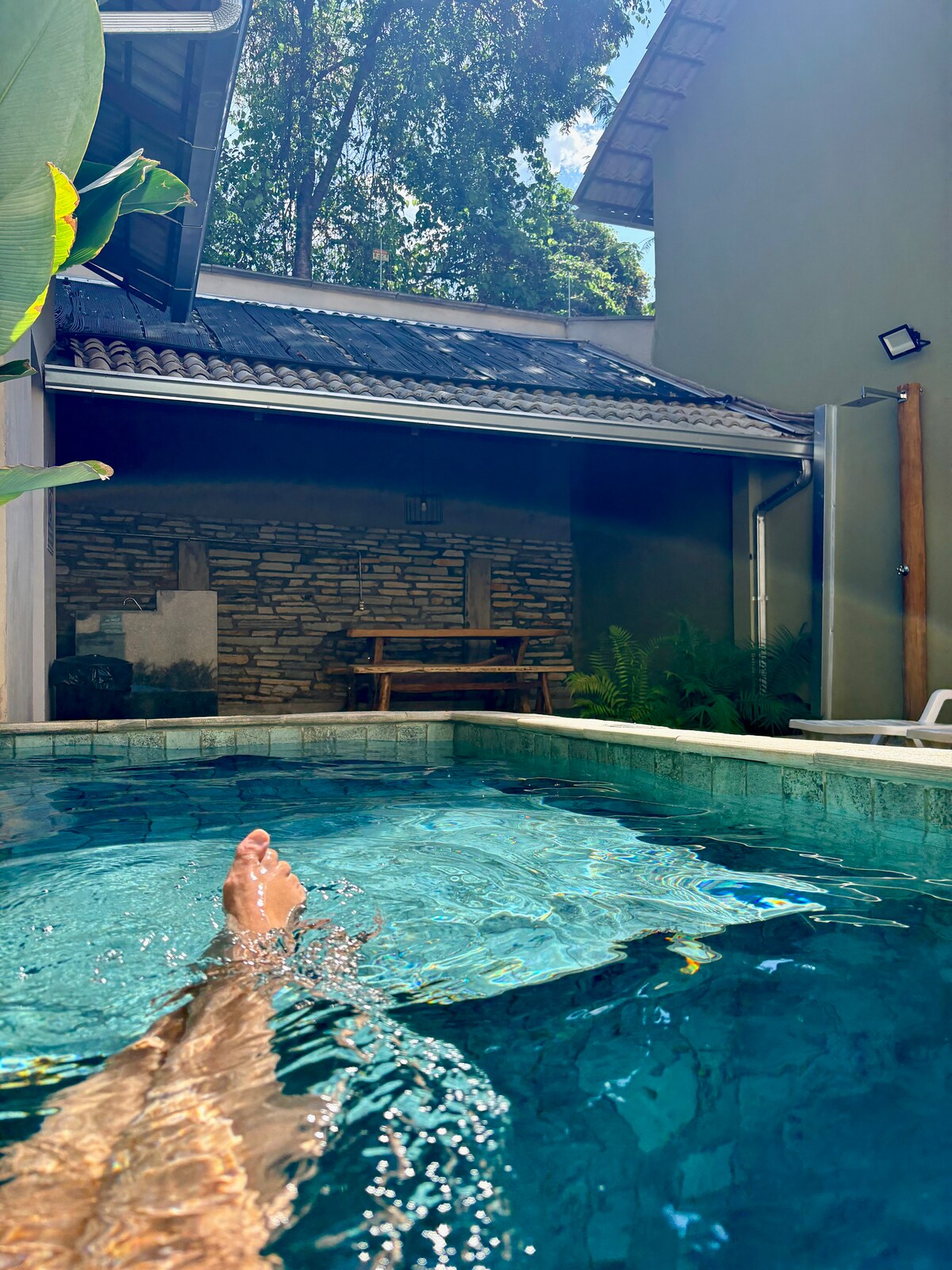 Willkommen in unserem charmanten Kurzurlaub! 🐚 Wir sind nur 1,4 km vom historischen Zentrum entfernt, aber mit der Gelassenheit derer, die den Rio das Almas als Nachbarn haben – nur 80 Meter und du kannst das frische Wasser bereits zu deinen Füßen spüren! Wir schufen einen einzigartigen Raum, in dem die Aboriginal Dreamtime den Cerrado fand und magische Geschichten und Beute von den Stränden des Pazifiks brachte. Eine Einladung zu Ruhe und Inspiration!! Unser Pool und Gourmetbereich werden gemeinsam genutzt, ideal zum Entspannen zum Klang der Vögel.