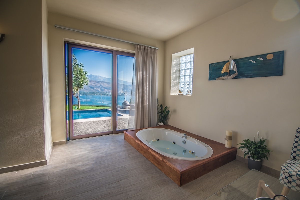 Villa Elias, atemberaubende Meerblicke, beheizter Pool