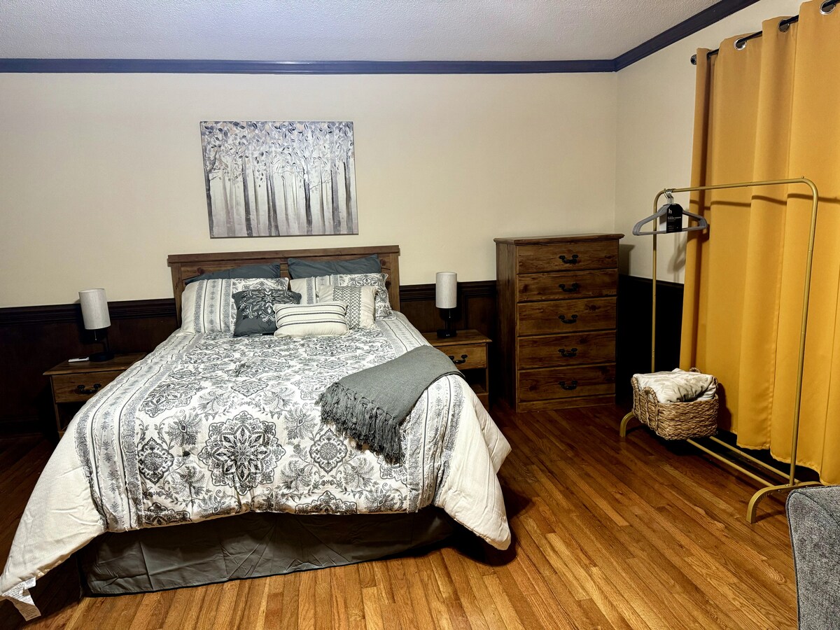 Willkommen in unserem gemütlichen privaten Gästehaus auf 7 Hektar schönem Land. 1 Bett und 1 Bad, es ist der perfekte Rückzugsort für einen erholsamen Kurzurlaub. Die voll ausgestattete Küche hat alles, was du brauchst, einschließlich Töpfen, Pfannen und allen Utensilien. Obwohl es keinen Backofen gibt, kannst du trotzdem köstliche Mahlzeiten zubereiten. Nur eine 15-minütige Fahrt von der Innenstadt von Greenville entfernt, hast du einfachen Zugang zu allem, was die Stadt zu bieten hat. Außerdem teilen wir dir als Einheimische sehr gerne unsere Lieblingsempfehlungen mit!