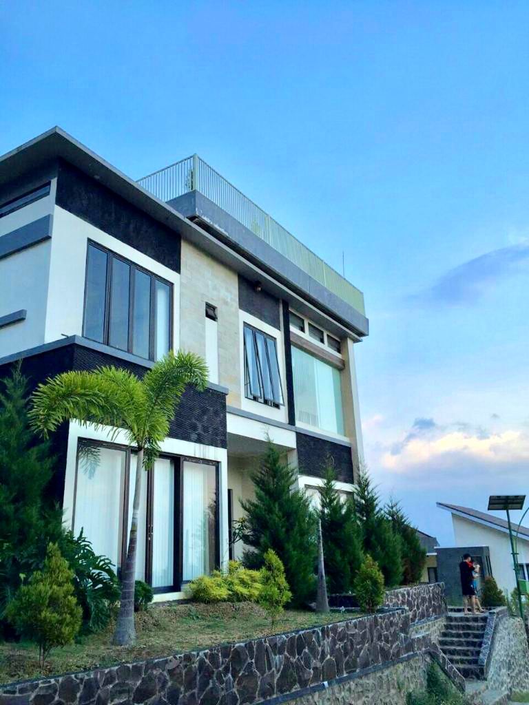Ein attraktives Privathausitz befindet sich direkt unter dem Kiefernhügel, außerdem die natürliche Frische der Luft zu spüren, blick auf die wunderschöne Stadt Batu. können wir auch die Paragliding-Attraktion sehen, die sich über der Villa dreht.