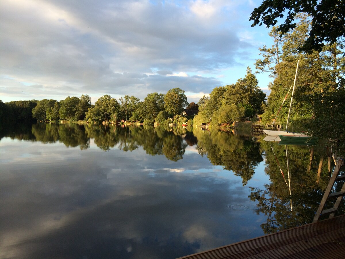 Absolute Ruhe, mitten im Grünen mit Blick auf den See von über 35m Höhe im NSG. Wald umgibt das "Türmchen" an 3 Seiten, Sie können auf dem 4000qm Grundstück wandeln und im reinen See baden, auf Liegebänken träumen, dem Seeadler vom 800m entfernten Horst zusehen. Der Wohnraum auf 2 Ebenen bietet alle Ausstattungsmerkmale zum Wohnen und Arbeiten (Glasfaser), auf der Terrasse können Sie die Sonne genießen und von den Beeren naschen. Erholen Sie sich bei Eulen, Spechten und Fledermäusen.