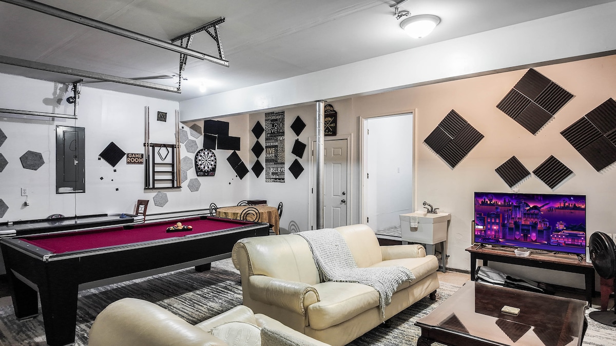 Schlafe in einem Märchen im Pocono Castle! Lebe deinen Traum in diesem 214 Quadratmeter großen Märchenhaus, in dem du wie ein König in einem echten Märchenschloss schlafen wirst. Entspanne dich im Luxus mit einem sprudelnden Whirlpool, einer Zedernsauna und endlosen magischen Details. Verkleide dich als Könige, Queens oder Ritter und erkunde das Gelände mit einem privaten ein Hektar großen Teich und vielleicht wirst du einen Goldenen Fisch fangen! Mit bezaubernden Schlafzimmern, Outdoor-Abenteuern und unvergesslichem Charme ist dies der OMG-Urlaub, auf den du gewartet hast!