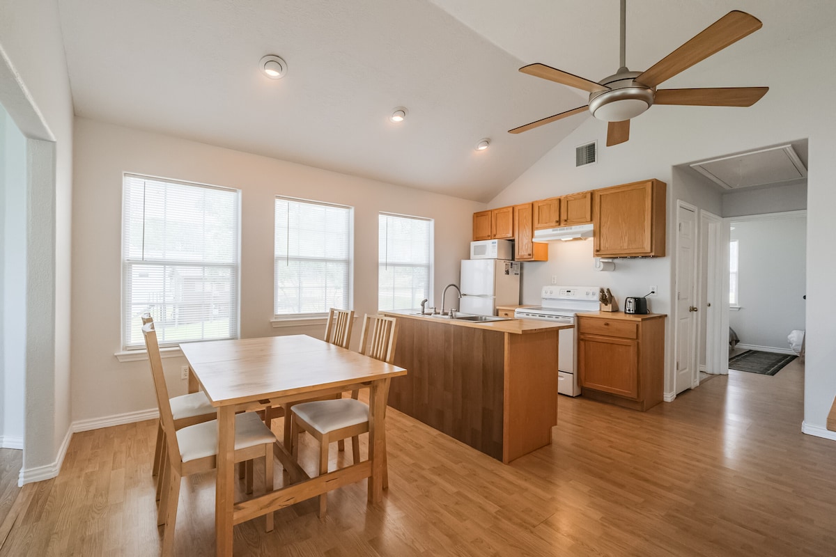 Genieße unser von Deutschland inspiriertes Ferienhaus am Lake Livingston! Es verfügt über zwei Küchen, 3 Schlafzimmer + Loft, gemütliche Wohnbereiche und entspannende private Außenbereiche mit einem neuen Whirlpool, um den schönen Wald rund um den See zu genießen. Es gibt so viel im Freien zu tun, vom Grillen, Abhängen, Wandern, Angeln, Kajakfahren, Picknicken und Wasserspaß. Unser Ferienhaus ist der perfekte Startplatz mit Seezugang gleich um die Ecke oder zum Erkunden aller Dinge im Freien. Ruhiges und ruhiges Doppelgrundstück und Nachbarschaft.