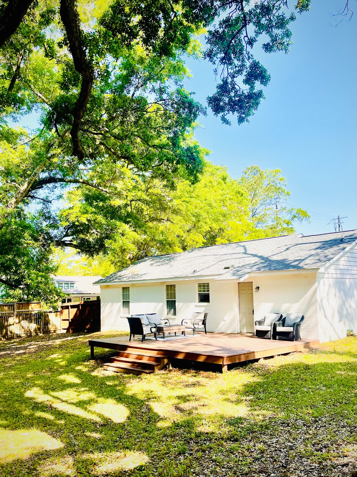 Ein lässiges, atemberaubendes und komfortables Ferienhaus in einer raffinierten Atmosphäre erwartet dich in diesem südlichen Charme drei Blocks von der malerischen Innenstadt von Fairhope entfernt, wo du schicke Einkaufsmöglichkeiten, feine Restaurants, Kunstläden, Park und unseren Pier finden kannst. Entspanne dich in einem bezaubernden historischen Ferienhaus mit 3 Schlafzimmern und 3 Bädern, das renoviert und mit allem ausgestattet ist, was du für einen unvergesslichen Urlaub benötigst. Das zusätzliche Schlafzimmer im Obergeschoss und 1 Badezimmer befinden sich nur wenige Schritte entfernt in der charmanten Pension, die über eine eigene Küchenzeile verfügt.