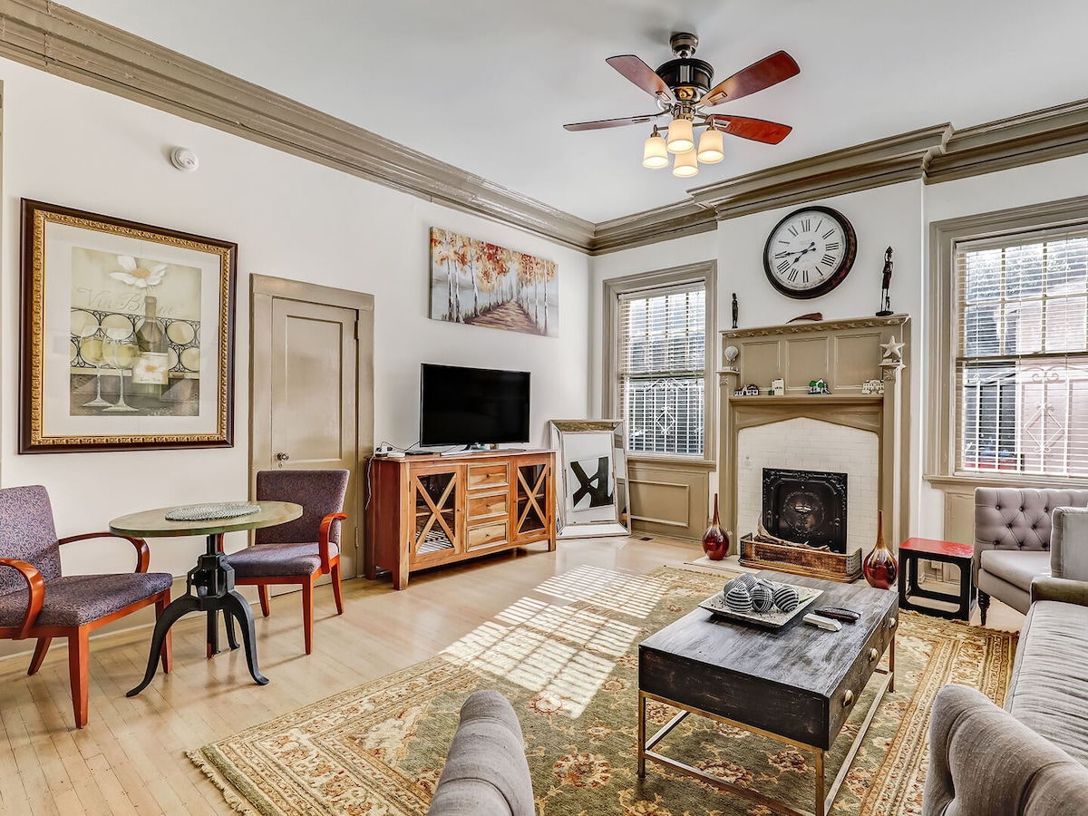 Sonnenüberfluteter Salon in einem eleganten Herrenhaus aus dem Jahr 1850. Ein wahres Juwel in der Jones Street, die als „eine der schönsten Straßen der USA“ bezeichnet wird. Hohe Decken, Marmorkamine, raumhohe Fenster mit Blick auf eine historische Kopfsteinpflasterstraße. Nur wenige Gehminuten von allem entfernt, was die Innenstadt zu bieten hat, ruhig und friedlich. Sehr großer Fernseher mit Premium-Kabel. Neues Kingsize-Bett. Waschküche mit Waschmaschine und Trockner. Perfekt, um „von zu Hause aus zu arbeiten“ mit komfortablem Schreibtisch und Highspeed-WLAN. Keine Haustiere. SVR-02203