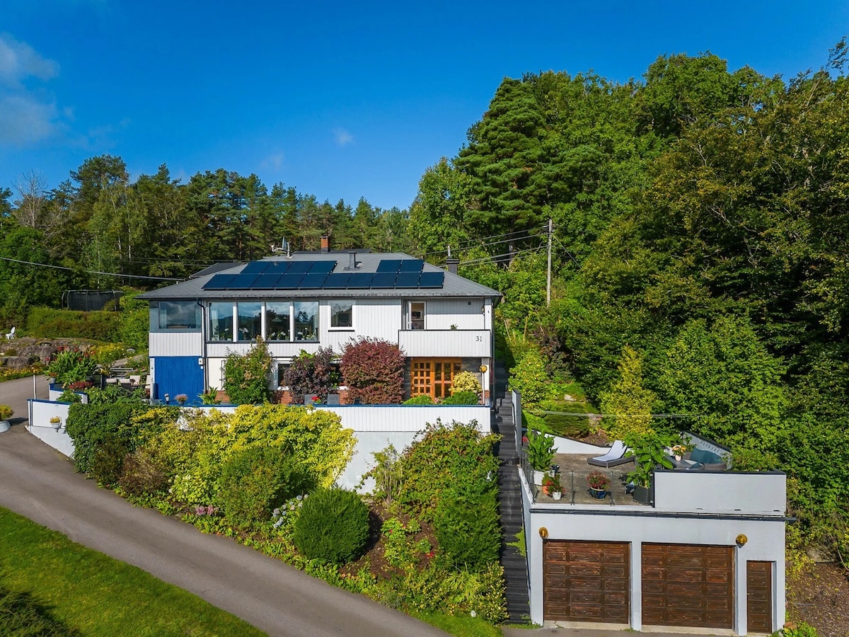 Modernes nordisches Design mit idyllischer und ungestörter Umgebung im Einklang mit der Natur. Panoramablick über den Fjord. 20 Minuten vom Sandefjord/1,5 Stunden von Oslo entfernt. Der Strand davor ist Bronnstadbukta, ein Gebiet mit reicher Natur, perfekt für Erwachsene und Kinder. Tolle Wanderungen direkt vor der Tür, mit zahlreichen beliebten Gipfelwanderungen und Wanderwegen. Schöner Fjord mit Inseln und Riffen, wenn du mit dem Boot anreist. Die Hütte ist auch für zwei Familien mit 2 Bädern und 4 Schlafzimmern geeignet. PARTYS SIND NICHT ERLAUBT