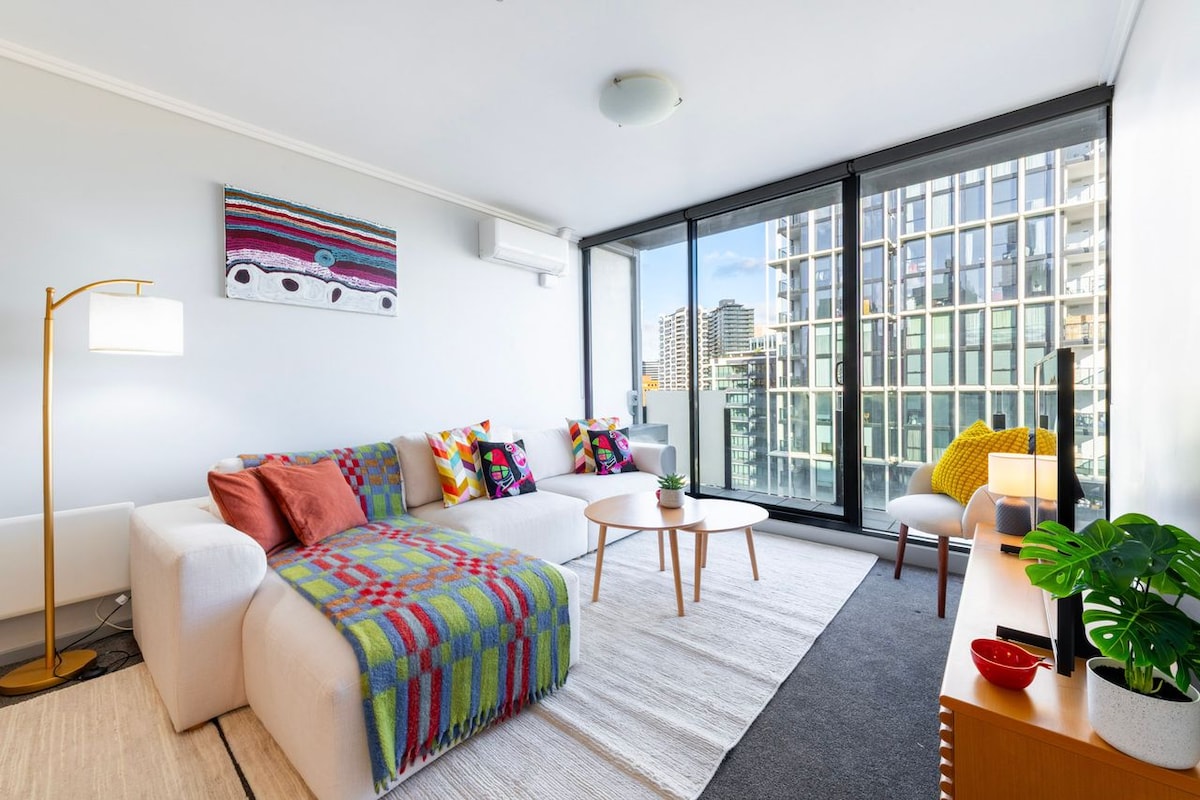 Ein ruhiger Ort, den du während deines Aufenthalts in Melbourne dein Zuhause nennen kannst, deine eigene 2-Zimmer-Wohnung mit 2 Badezimmern (64 m² Innenfläche + 6 m² Balkon). Entworfen mit Rückzugsort im Sinn, einfach, modern und minimalistisch. Genieße die atemberaubende Aussicht auf die Skyline der Stadt. Dies ist ein familienfreundlicher Ort. Das Hotel liegt neben der Southern Cross Station und dem Skybus-Terminal. In der kostenlosen Straßenbahnzone gelegen – alles, was Melbourne zu bieten hat, befindet sich in deiner Nähe – in der Nähe von günstigen Restaurants, noblen Restaurants und angesagten Cafés.