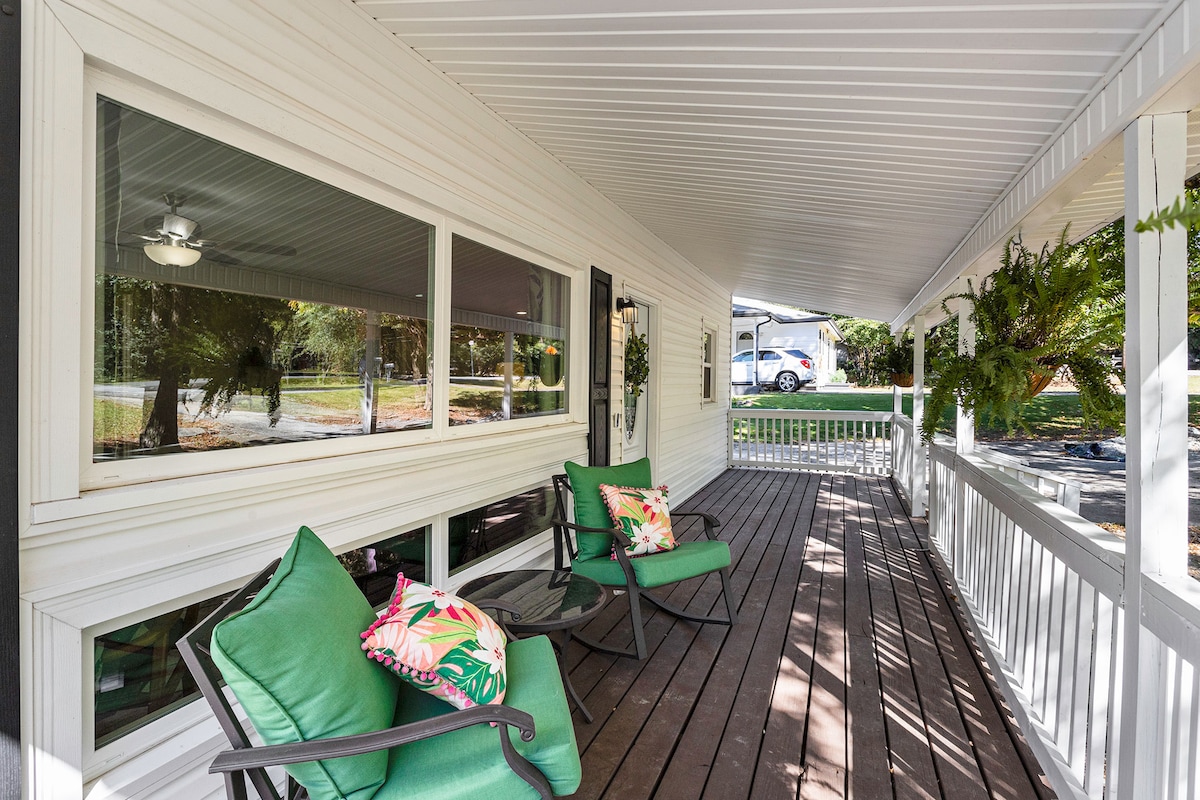 Gemütliches Landhaus mit entspannender Veranda und Hinterhof.