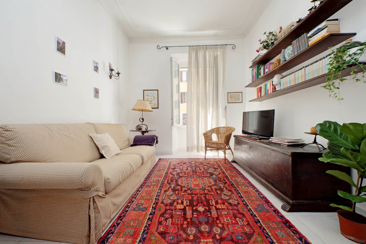 Diese kleine Wohnung im Herzen Roms ist ein Ort, den ich liebe und der mir unvergessliche Momente gegeben hat. Ich glaube, es ist eine perfekte Ecke für zwei Personen. Du erreichst alle wichtigen Orte in der Mitte zu Fuß. Sie ist ideal für zwei Personen, weil sie nur ein Schlafzimmer und ein Badezimmer hat, aber ausnahmsweise vermiete ich es für bis zu 4 Personen mit Familien mit zwei Kindern. Im Wohnzimmer befinden sich zwei Sessel, die in Betten umgewandelt werden. Im Juli und August kannst du die Klimaanlage genießen!
