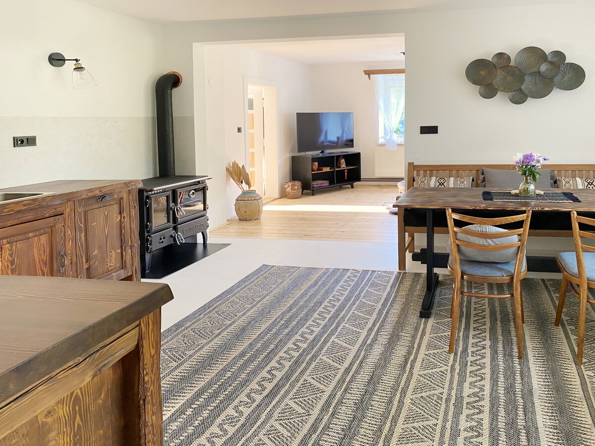 Willkommen in NMNM in der Žưárské vrchy Protected Landscape Area, einem Ort der schönen Natur, Sportarten und großen internationalen Rassen. Ich biete dir eine schöne Unterkunft in einem Familienhaus, das du ganz ganz für dich allein hast. Zudem sorgt das Haus für absolute Privatsphäre, während deines Aufenthalts wird dich nichts stören.