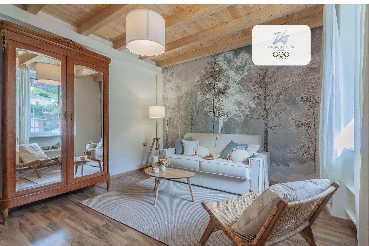 Unsere Wohnung befindet sich auf 850 Metern Höhe, umgeben von viel Grün und am Fuße des Pizzo Badile, von dem aus Sie einen herrlichen Blick genießen können. Auf der Rückseite des Hauses befindet sich ein geräumiger Garten mit Grillplatz und nur wenige Schritte entfernt, nur nach vorheriger Reservierung und gegen einen ZUSÄTZLICHEN KOSTEN, können Sie den Außenentspannungsbereich mit einer finnischen Wanne und einer finnischen Sauna, die mit Holz beheizt werden, für zweieinhalb Stunden nutzen. Es ist ein perfekter Ort für Paare, aber auch für Ihre vierbeinigen Freunde.