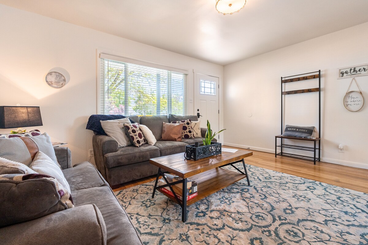 Genieße ein stilvolles Erlebnis in dieser zentral gelegenen Unterkunft. Modernisiert und gemütlich mit originalen Hartholzböden aus dem Jahr 1950. Genieße erholsamen Schlaf auf bequemen Betten in einer Wohngegend mit freundlichen Geräuschen. Komplett renovierte Küche mit neueren Geräten, Quarz-Arbeitsplatten und Willkommenskorb mit Kaffee, Müsli und Popcorn, die du genießen kannst, während du deine Favoriten streamst. Begehbare Dusche, Waschmaschine und Trockner zur kostenlosen Nutzung. Genieße die schönen Jahreszeiten in Utah in deinem privaten, eingezäunten Garten auf der Terrasse oder Veranda.