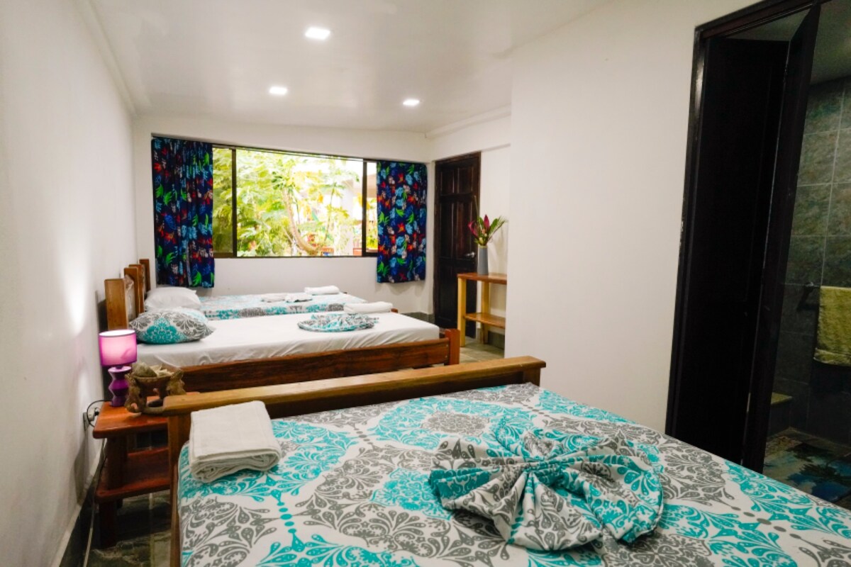Arbol de Vida is small family owned Boutique Hotel in the Center of the downtown Puerto Jiménez. We have 5 unique rooms, all with double bed. Swimming pool and sun bathing chairs for you to enjoy. Great wifi and a yoga Shala. The Vegan Cafe will open later this year. Most of the rooms have private bathroom (one bathroom is shared as a quadrupled room, one bath is on the hallway) We are brand new, cute, comfortable and central!