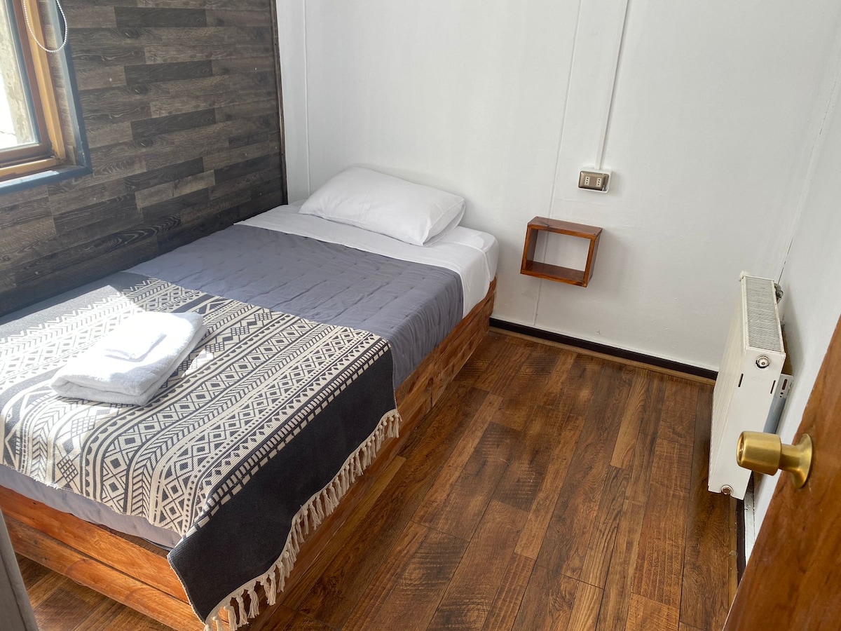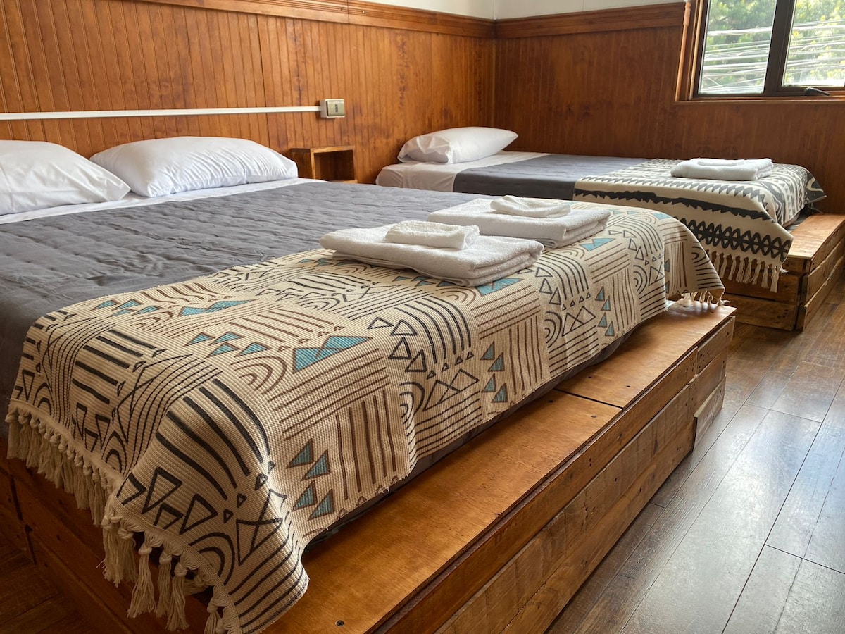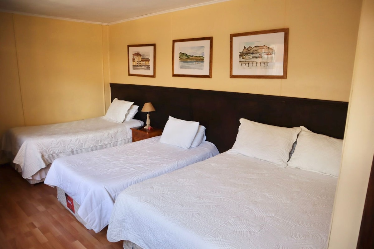 Gemütliches Dreibettzimmer im Hotel Chalet Chapital mit eigenem Bad, Zentralheizung, Handtüchern, Seife, Shampoo und Frühstück inbegriffen. Ideal für Familien oder eine Gruppe, bietet es eine warme und ruhige Umgebung zum Ausruhen. Genieße bequeme Betten, persönliche Aufmerksamkeit und eine zentrale Lage, die dich mit den Besten der Stadt und Patagonien verbindet, nur wenige Schritte von der Plaza de Armas entfernt.