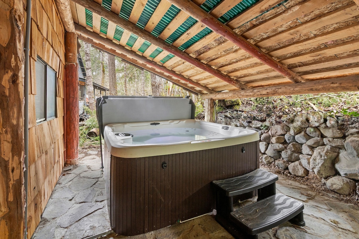 TAHOMA STAY is your cozy mountain cabin 5 miles from Mt.Rainier National Park. Private relaxation under the stars in the hottub, or in the cedar steam sauna. Cozy up at the huge riverstone fireplace in the center of the cabin. Relax in 8 separate outdoor areas , including a 10x 16 pergola w/fire. A private DNR trailhead at property for hiking/and much more. Your mountain cottage stay will delight you by the caress of nature; views from each corner overlooking old growth Douglas firs. (wifi)