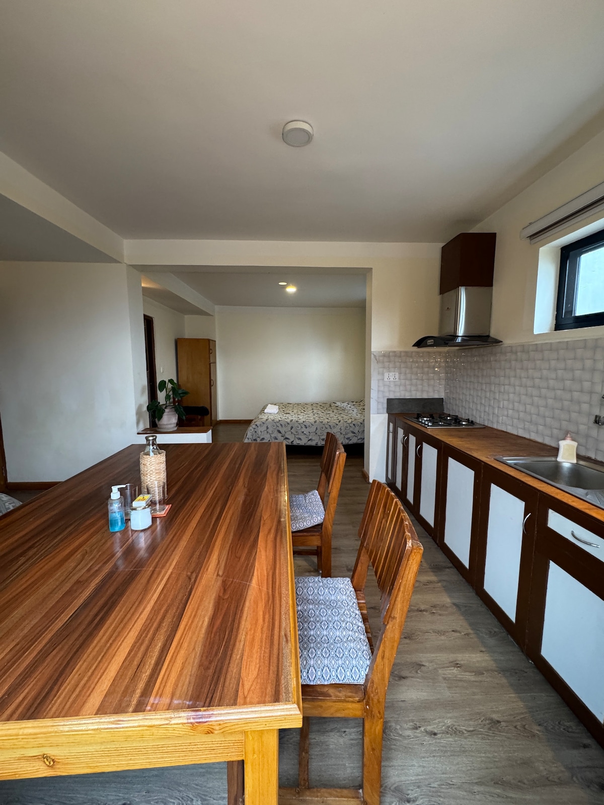 Eine friedliche Wohnung auf einem Hügel, ideal für eine Familie oder Freunde, die Komfort und Ruhe suchen. Ein vollständig privater Raum mit 2 Zimmern, Küchenzeile, 2 Badezimmern, Essbereich und Fernseher. Unsere Gäste genießen auch die Auswahl an hausgemachten Mahlzeiten, die nur wenige Schritte entfernt sind, oder erkunden unseren großen Gemüsegarten. Wir bauen saisonale Produkte wie frische Kräuter, Salat, Blumenkohl, Spinat, Karotten, Tomaten, Chilis und mehr an, die alle zu einem fairen lokalen Preis für deine eigene Küche erhältlich sind.