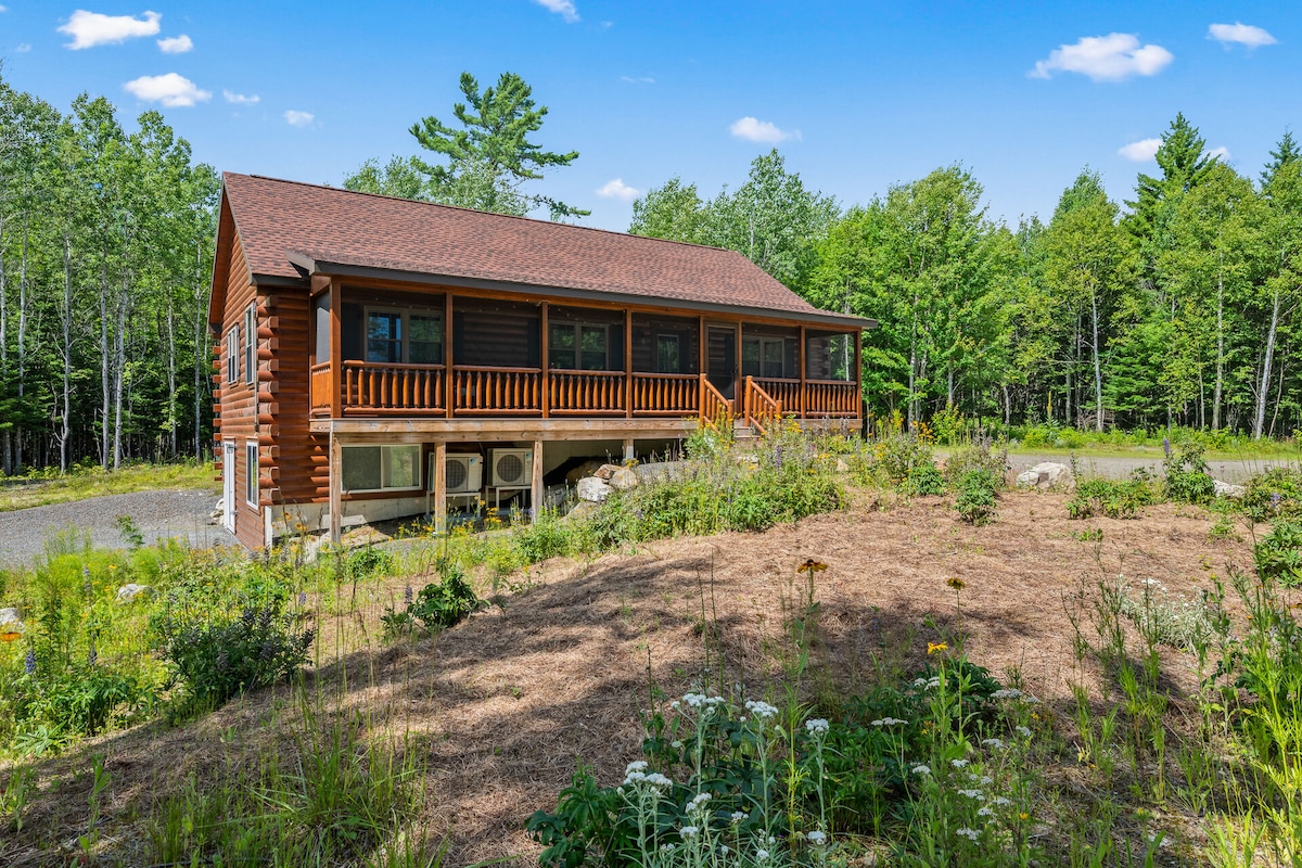Entspanne dich in dieser netzunabhängigen, modernen A-Rahmen-Hütte auf 90 Hektar in der Seenregion von Maine. Die Hütte liegt tief im Wald, fernab von allem. 4 Kajaks und Brennholz inklusive. Separate Etagenhütte erhöht die Schlafkapazität auf 10 Holzbeheizter Whirlpool aus Zedernholz – ein entspannendes, einzigartiges Erlebnis Mehr als 5 Seen in der Nähe - ausgezeichnetes Schwimmen und Kajakfahren Zedernholz in der gesamten Hütte, Betonarbeitsplatten, Zedern-/Betondusche. Feuerstelle im Freien. Wanderwege. Biberteich. Die Unterkunft verfügt über eine private Landebahn (51ME)