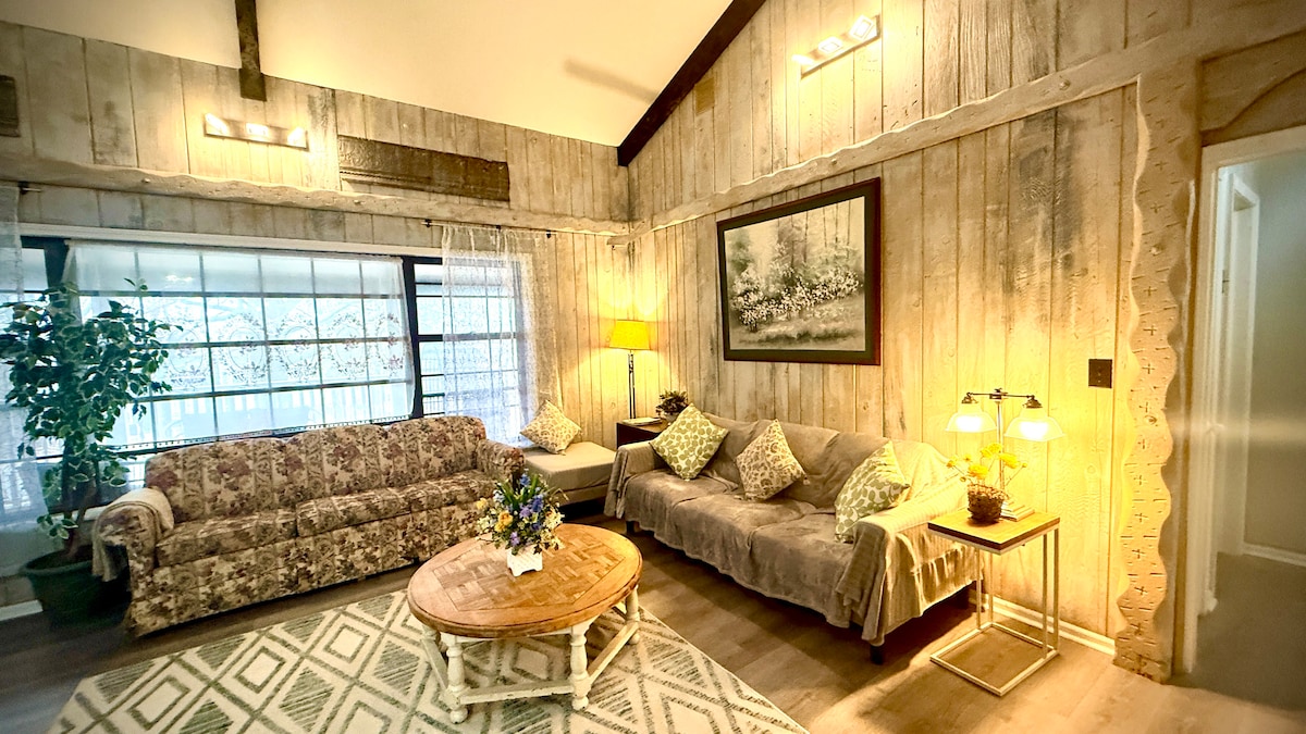 Fliehe in unsere Hütte, die erstklassig bewertete Airbnb in ganz Kansas für einen gemütlichen, ruhigen Kurzurlaub verdient hat. Ideal zum Entspannen und Verjüngen nach den Anforderungen eines hektischen Tages. Genieße malerische Wanderwege, Axtwerfen, Hufeisen oder einen ruhigen Spaziergang durch unser Labyrinth. Beende den Tag bei einem atemberaubenden Sonnenuntergang über dem Tal von unserer Schaukel aus. Nur 5 Minuten vom See entfernt! Hinweis: Die Hütte befindet sich auf einem gemeinsam genutzten Grundstück mit einem Retreat-Center, Sacred Hearts Healing.