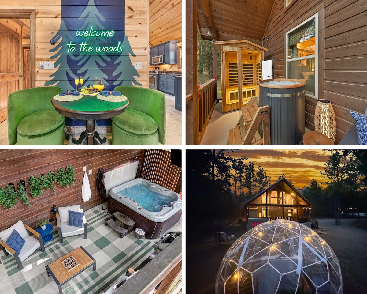 Dieses luxuriöse Waldrefugium liegt inmitten von Kiefern, bietet Platz für 17 Personen und verfügt über einen privaten Kinoraum mit 86-Zoll-Bildschirm, einen Whirlpool, umlaufende Terrassen, eine Feuerstelle, eine Spielhalle, ein Shuffleboard und vieles mehr. Hundefreundlich (max. 2, 150 $/Hund). 🎬 Filmraum | 🛁 Whirlpool | 🔥 Feuerstelle | 🎮 Spielhalle 🧒 Spielset | 🐾 Hundefreundlich | 📡 Hulu + Disney+ ✭ „Der Theaterraum, das Spielset und die umlaufende Veranda waren genau das, was wir zum Entspannen brauchten!“