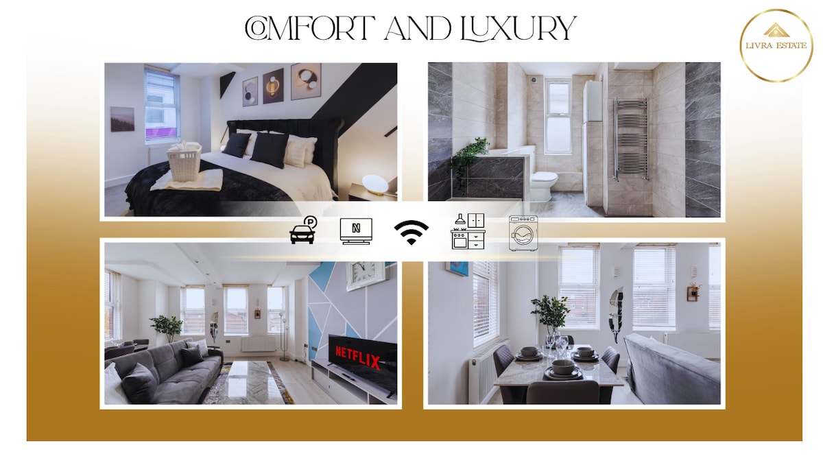 2BR • 2BA • Emperor Beds • Free Parking • Near LGW