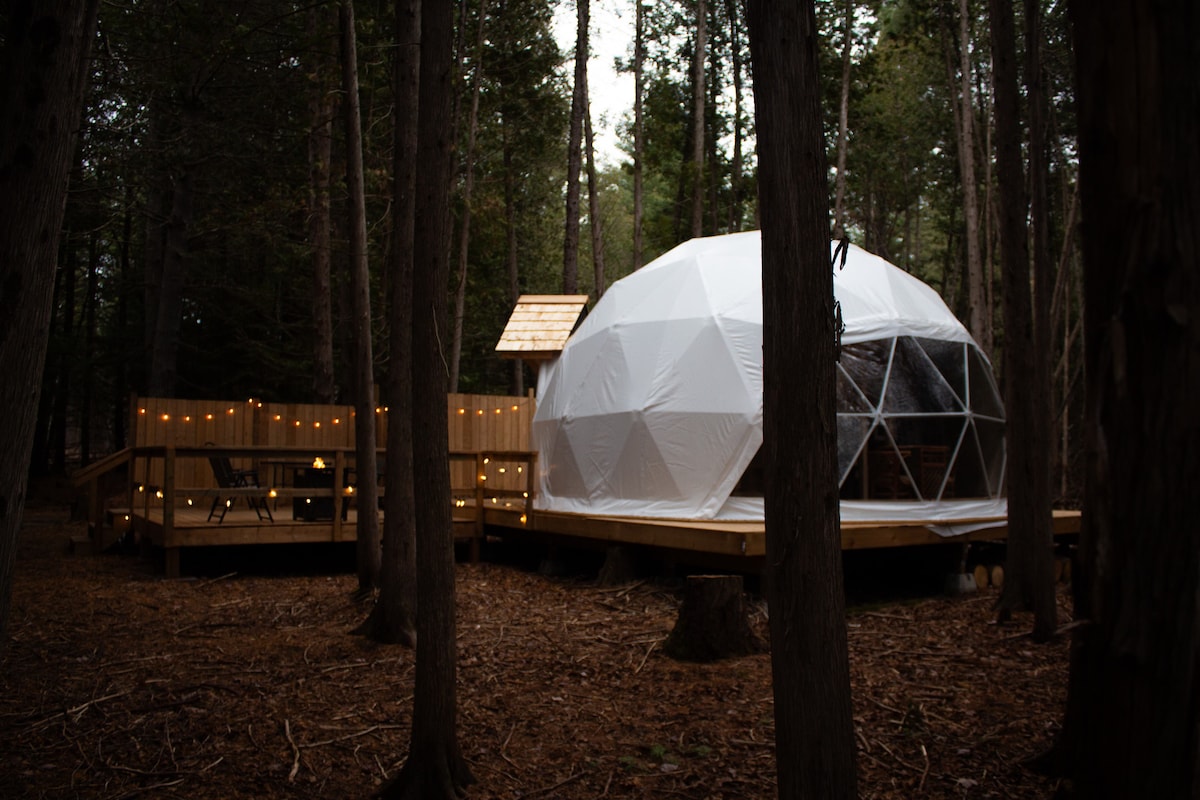 The Meadow Dome is a private oasis surrounded by 98 acres of gorgeous nature you will have all to yourself. •NEW natural pool •Cedar cabin sauna •Chemical-free hot tub •Walking trails •Indoor fireplace •Outdoor fire pit Close to Algonquin Park Surrounded by thousands of lakes. Meadow Dome is an ideal spot if you want to unwind and enjoy nature at its finest. Meadow Dome is solar powered with wood heating and drinking water provided. There is a close by outhouse.