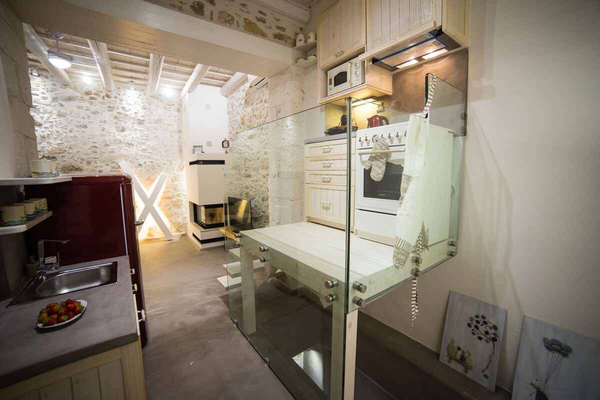 Krokos Kreta ist ein altes osmanisches Haus im Herzen der Altstadt von Rethymno. Dies ist ein historisches Gebäude, das durch die Archäologie von Rethymno geschützt ist, sodass alle Restaurierungen sehr respektvoll mit dem Ort waren, um die Seele des Hauses zu behalten. Die Treppe, der Holzboden, der Kiosk, das Steinwaschbecken und die Möbel werden von Hand von einheimischen Handwerkern und mit dem traditionellen Material der Insel hergestellt.