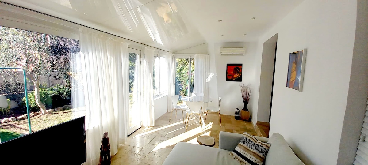 [ ⭐️ Sterne-Unterkunft⭐️] Helle und frisch renovierte Wohnung mit hochwertigen Materialien und Möbeln. In der Nähe des Meeres, der Naturbasis, des SNCF-Bahnhofs und des Stadtzentrums, seine Lage in einer ruhigen Wohngegend wird Sie verführen. Garten mit exotischen Noten, Pergola mit verstellbaren Lamellen, Möglichkeit, Ihr Auto im Garten zu parken oder sich in der Sonne zu sonnen. Bettwäsche und Handtücher ohne Aufpreis inklusive, Toilettenpapier und Kaffee im Voraus.