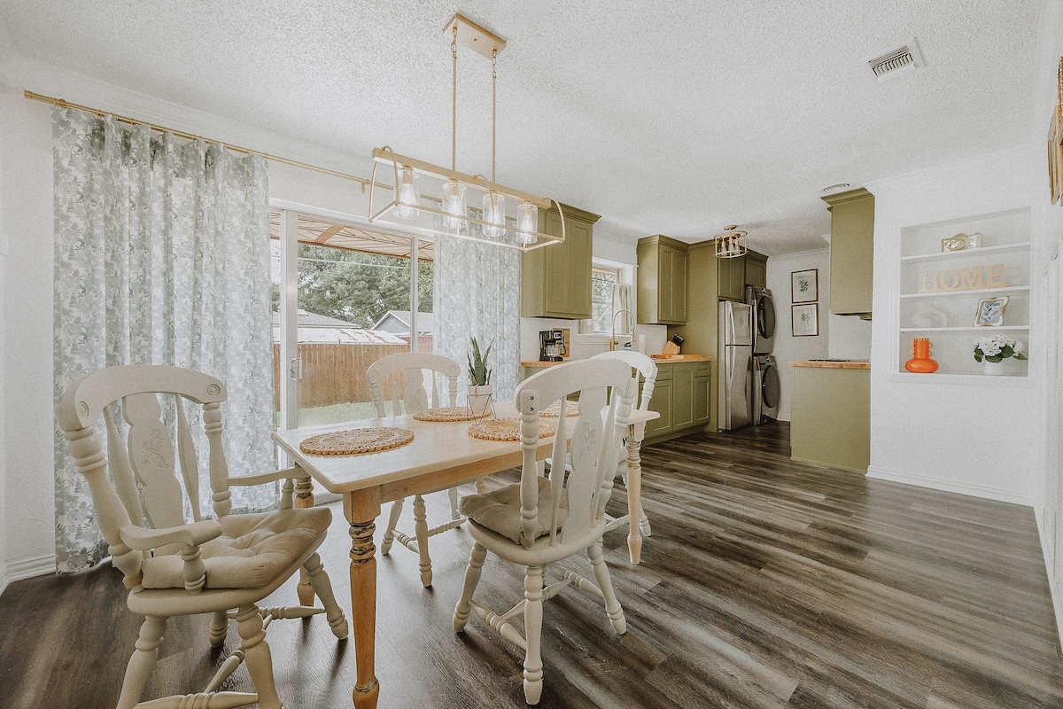 Nettes, offenes, luftiges, modernes Reihenhaus mit 3 Schlafzimmern und 2 1/2 Bädern im Herzen von Richardson. Direkt am Telecom Corridor gelegen, ist unser Haus an der Richardson Station perfekt für ein langes Wochenende oder einen längeren Aufenthalt. Unser komfortabel eingerichteter Wohnbereich bietet stundenlange Unterhaltung mit 50-Zoll-Roku-TV, Arcade-Gaming-System und Desktop mit zwei Monitoren. Im Obergeschoss im Hauptschlafzimmer findest du einen kleinen Arbeitsbereich mit einem Schreibtisch, der als Schlafbereich dienen kann, und unser malerischer Garten verfügt über einen Gasgrill, eine Feuerstelle und Sitzgelegenheiten.